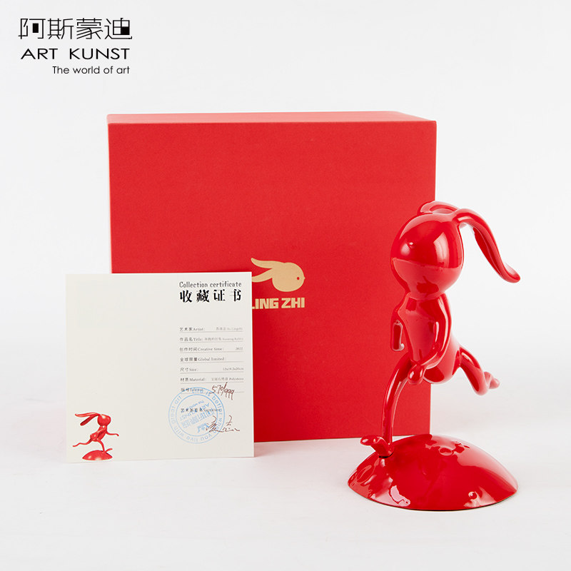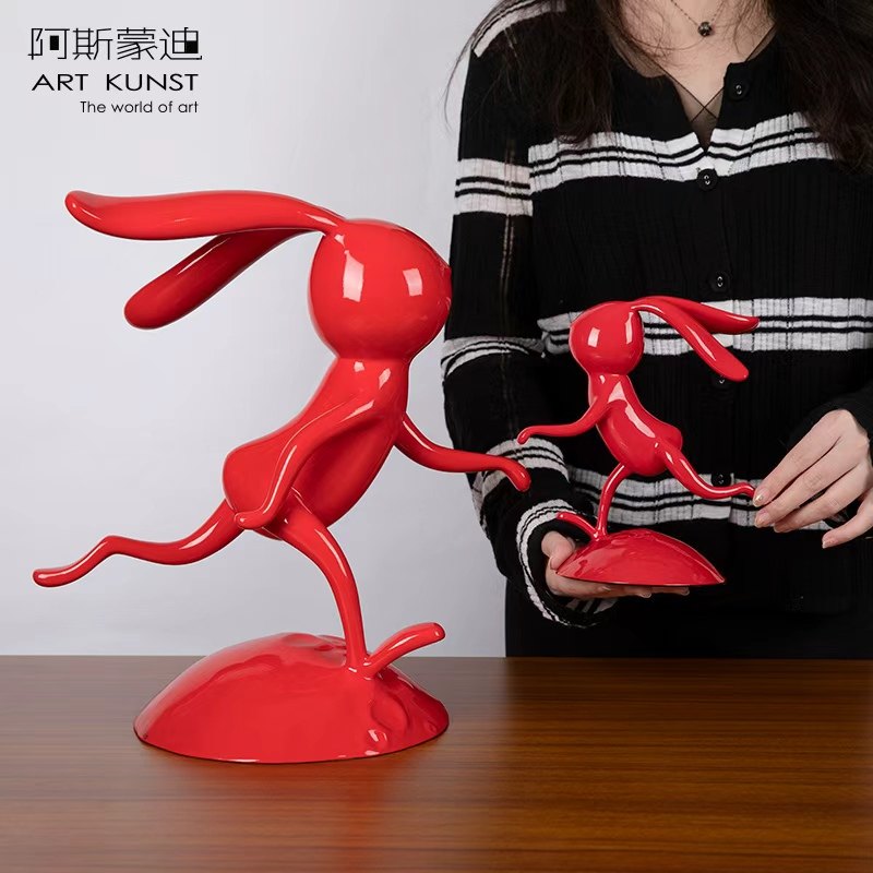 📚 阿斯蒙迪红色生肖兔子桌面摆件玄关装饰生日礼物艺术品雕塑苏凌志