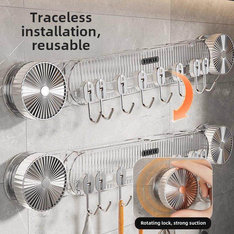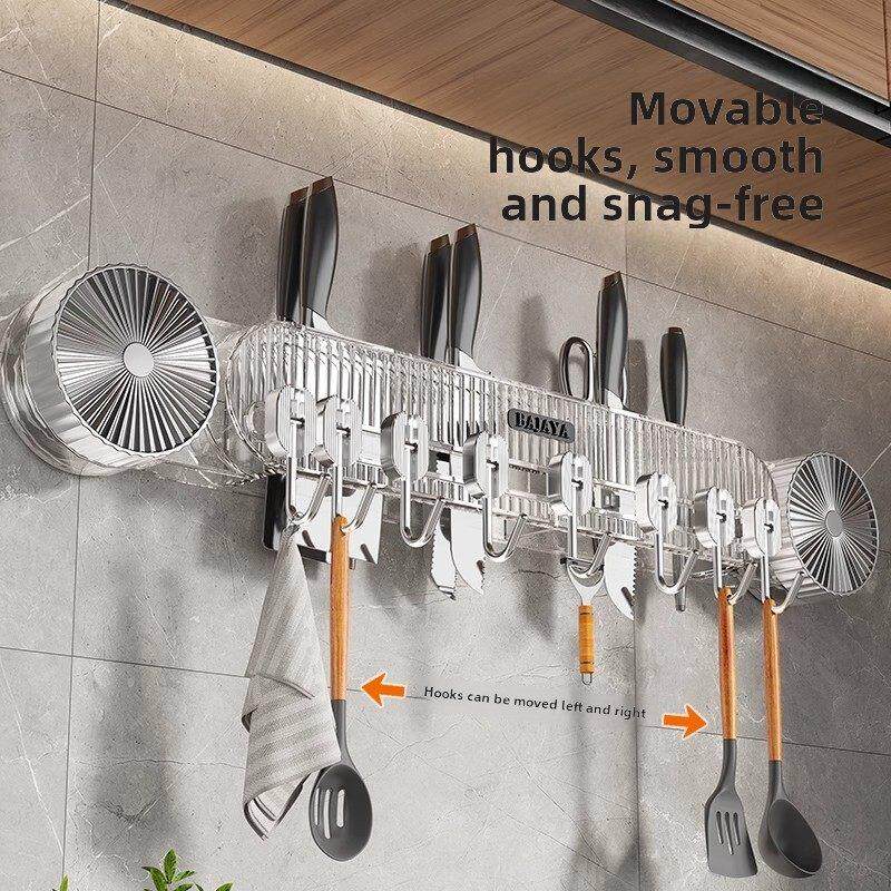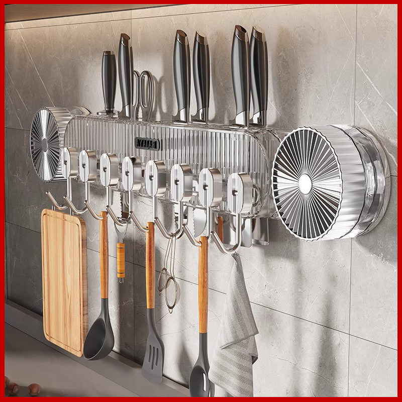 📚 刀架储物架吸盘厨房挂钩无冲孔挂杆抹刀勺刀多功能壁挂式搁架