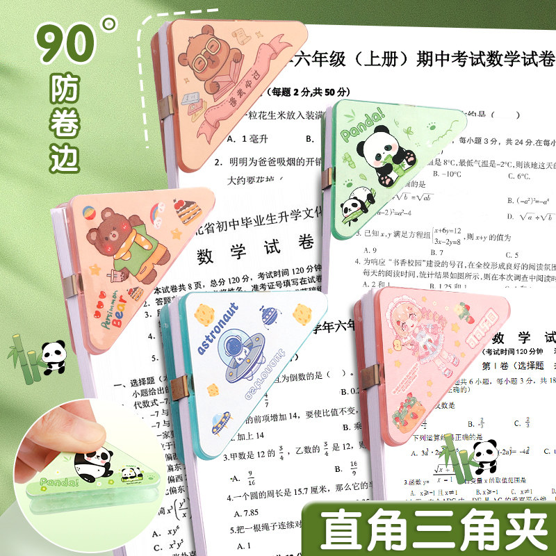 📚 三角夹书夹固定书本边角夹试卷夹收纳整理文件夹可爱卡通文字小学生资料小夹子文具夹卷子办公票据发票长尾夹