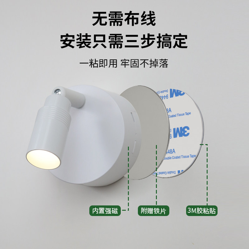 📚 全光谱免布线壁灯墙灯可调焦聚光灯床头灯免打孔免接线充电射灯