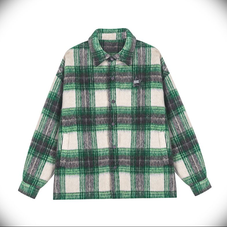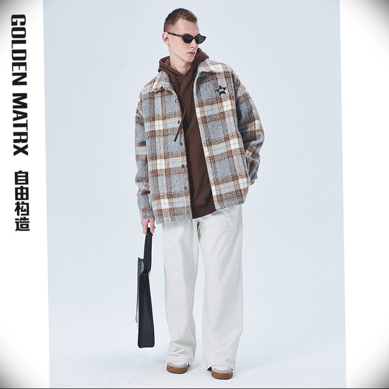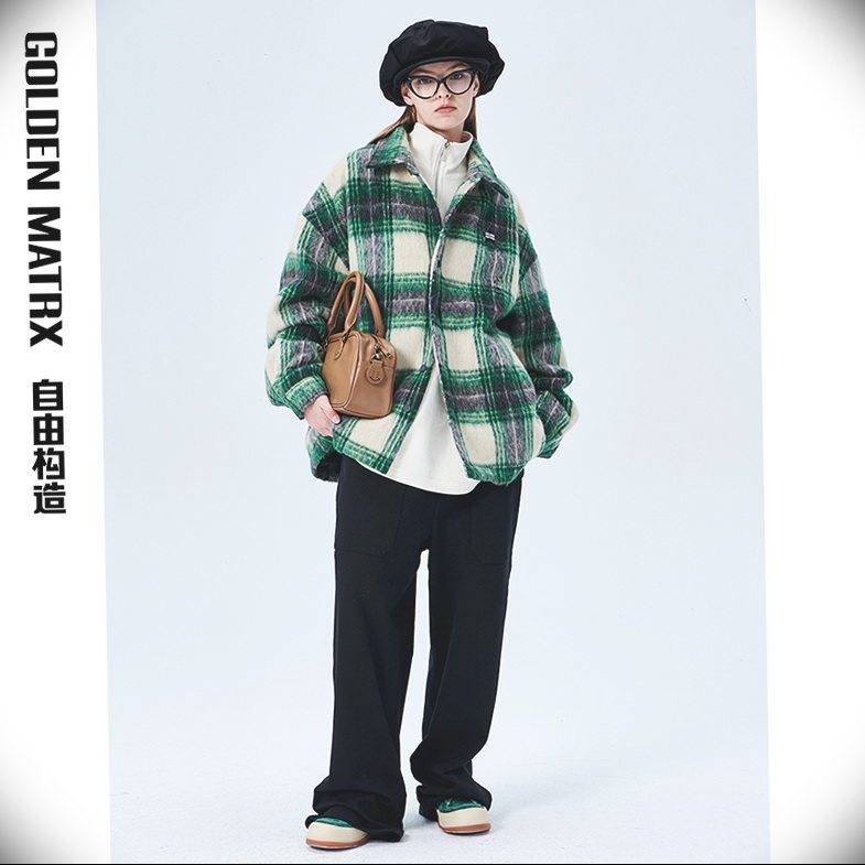 📚 自由构造GOLDEN MATRX男女同款长毛绒格纹复古休闲设计师夹克外套