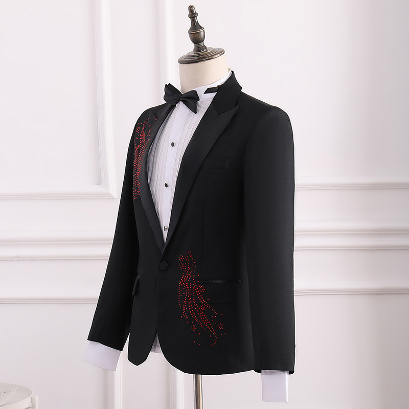 📚 演出服成人宴会主持人合唱团男士影楼黑色西服套装青年歌手表演服