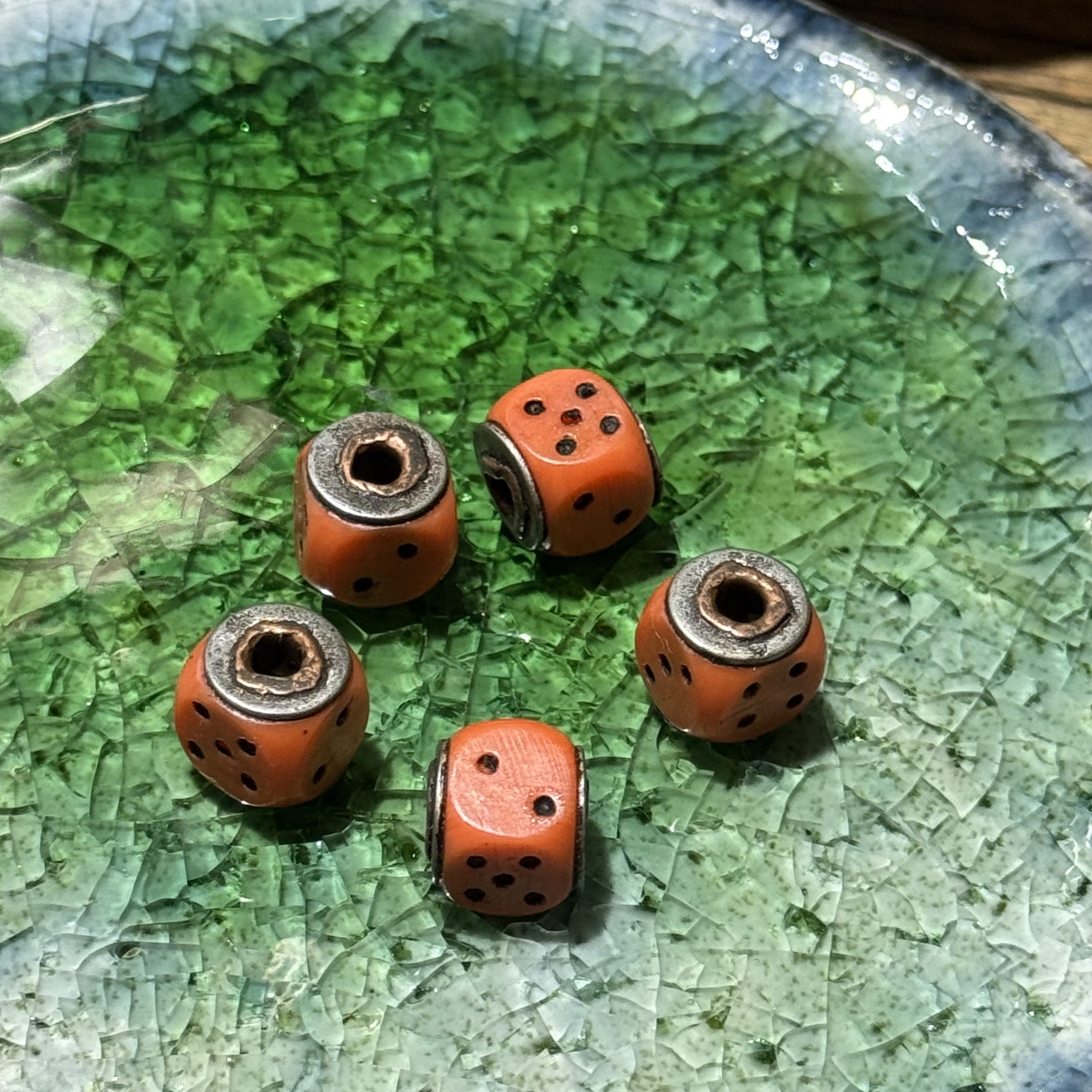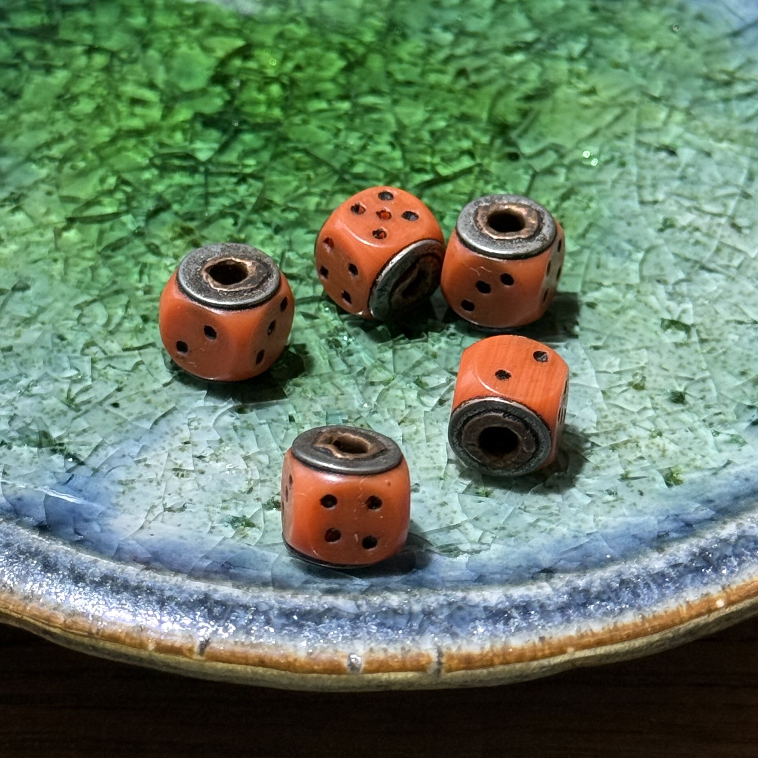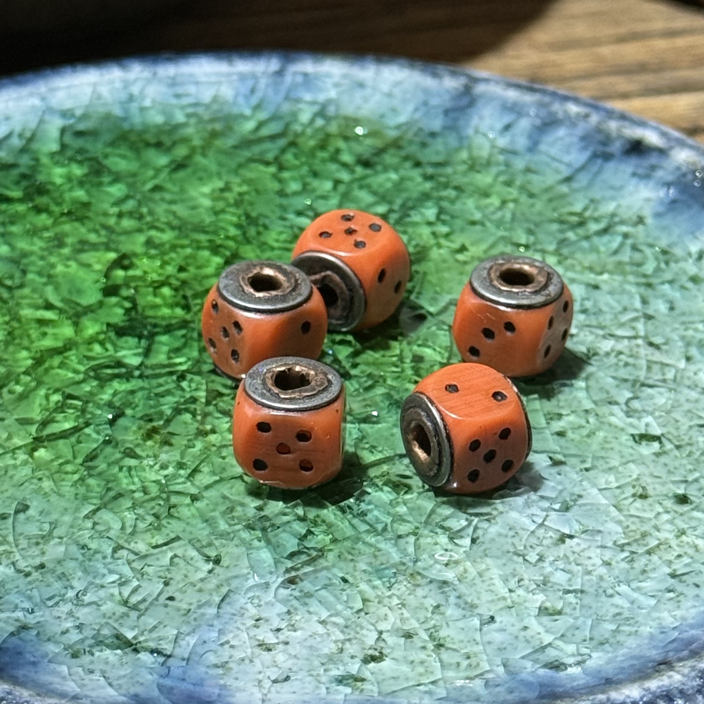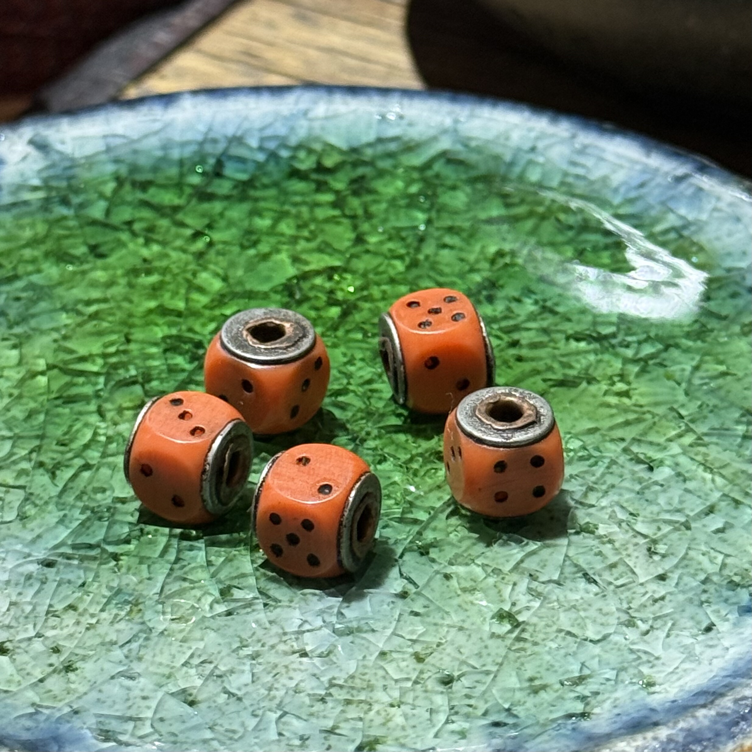 📚 藏式手工老料器骰子文玩配饰古法色牛骨DIY配饰佛珠手串顶珠腰珠