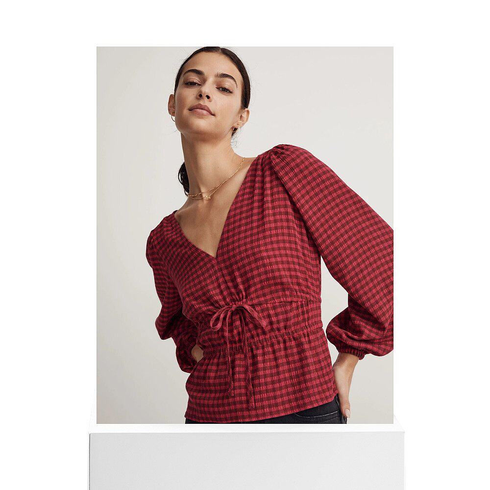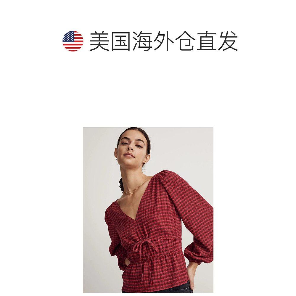 📚 自营 Madewell Saffi Peplum Top Wpmen的褶皱格子弹力烟熏JDM608
