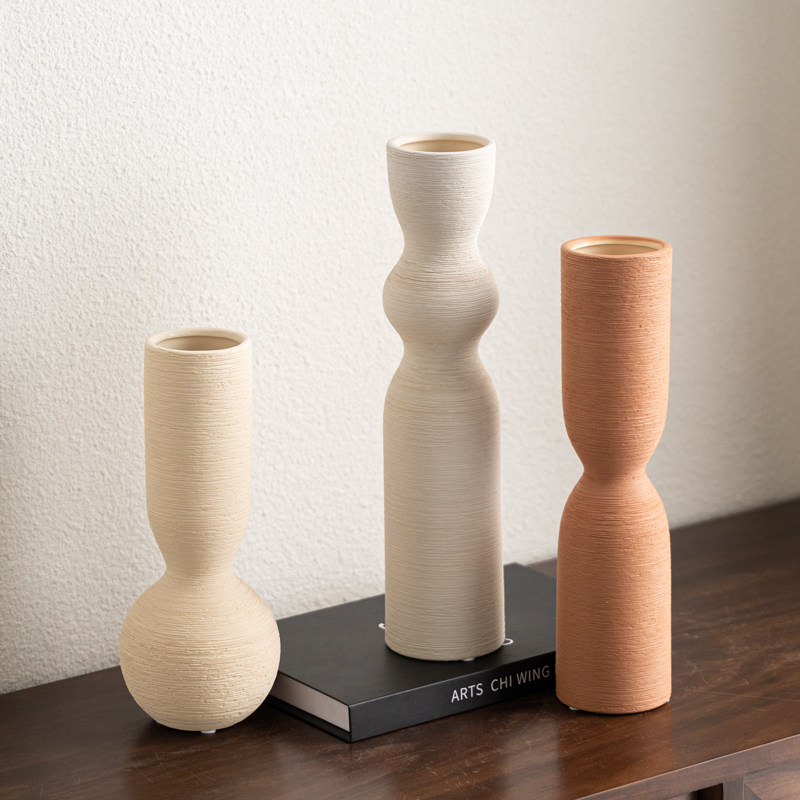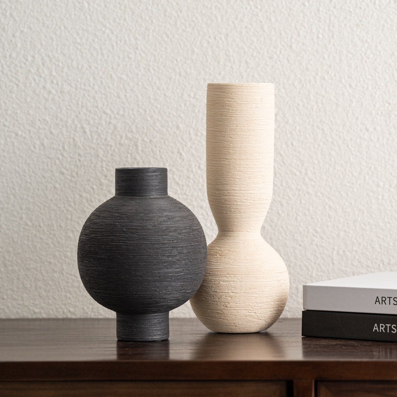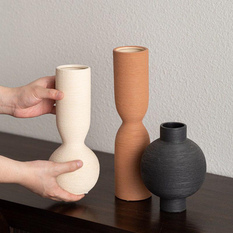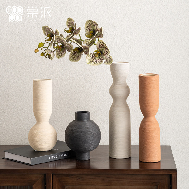 📚 中古高级感花瓶肌理陶瓷摆件侘寂风样板房客厅民宿玄关插花装饰品
