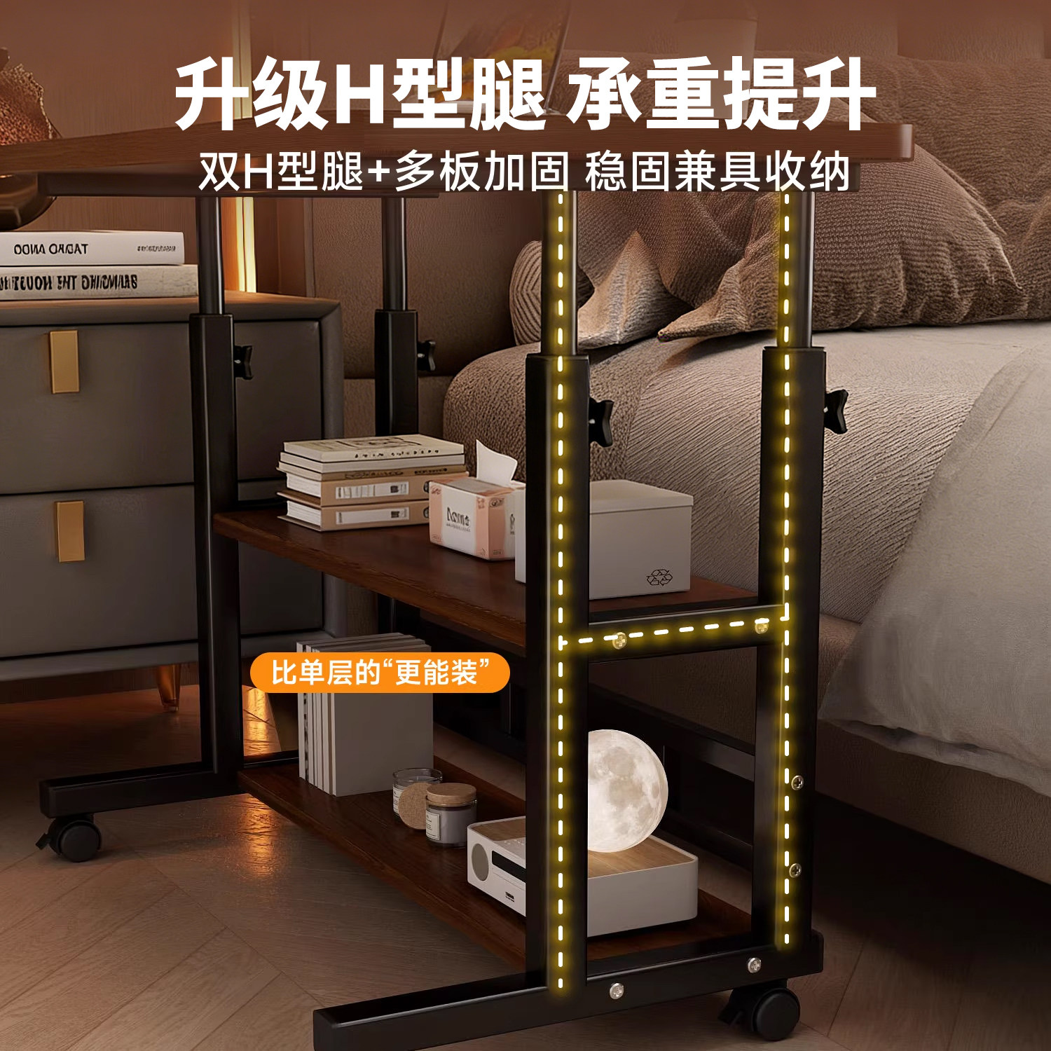 🎁这款书桌的设计真的是太赞了!它不仅实用,而且极具时尚感。放在床边,既方便又美观,绝对是卧室里的一道亮丽风景线。而且,它的可移动升降设计更是让人惊喜,无论是空间大小,还是使用需求,都能轻松满足。