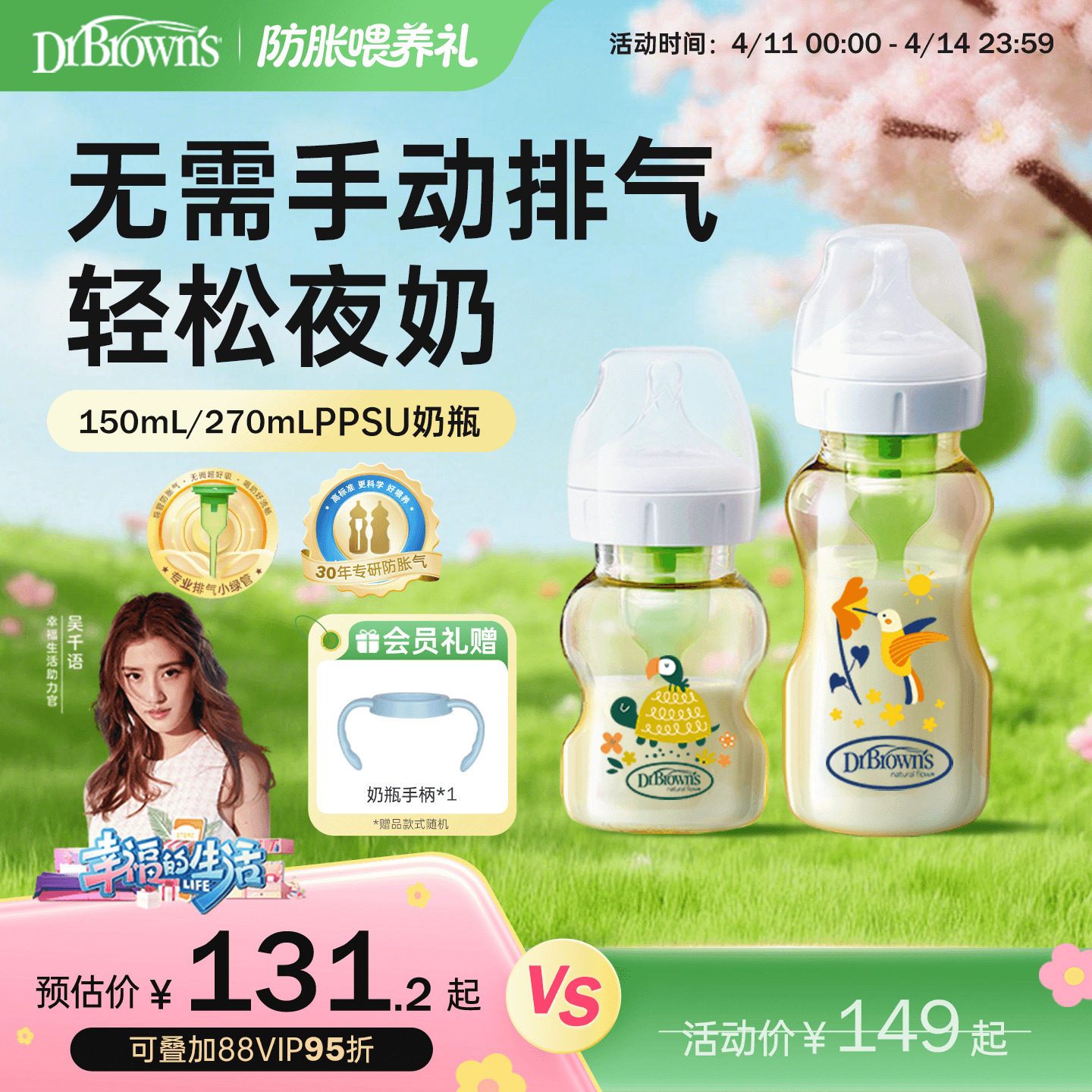 99¥ CZ193 YZOu5gDf13M¥ https://m.tb.cn/h.ipBfkkO 布朗博士奶瓶新生儿奶嘴0-一岁以上宝宝防胀气奶瓶PPSU不易呛耐摔 --------------------- 【原售价】318元 【现售价】149元。