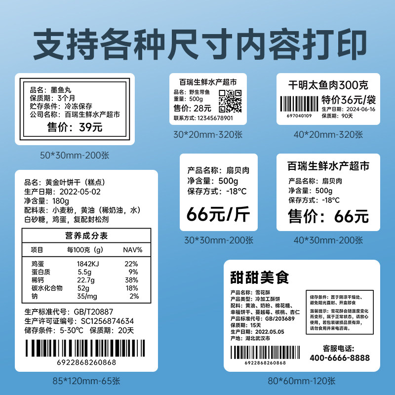 📚 德佟印立方DP305P大尺寸食品标签打印机蛋糕店生产日期配料表家用不干胶透明标签机蓝牙手持热敏300DPI条码机