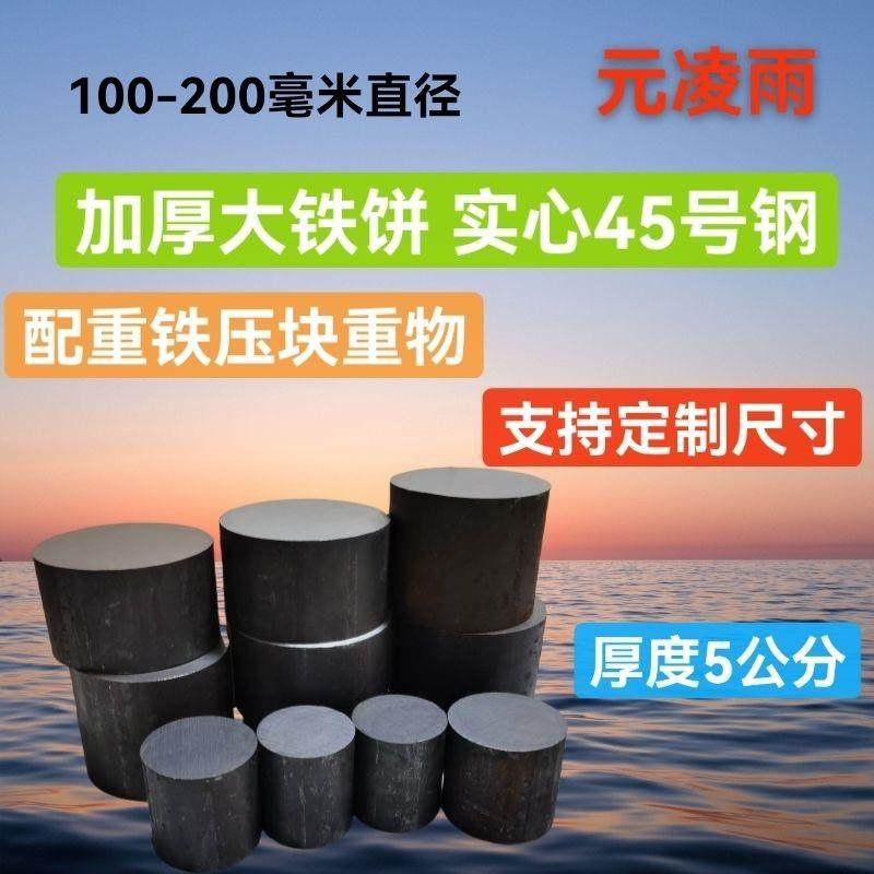 📚 铁棒实心铁块圆钢铁饼5公分厚铁块45号铁墩圆形圆棒铁棒船锚配重