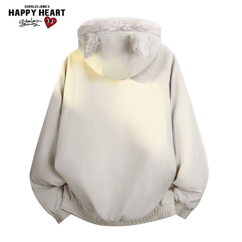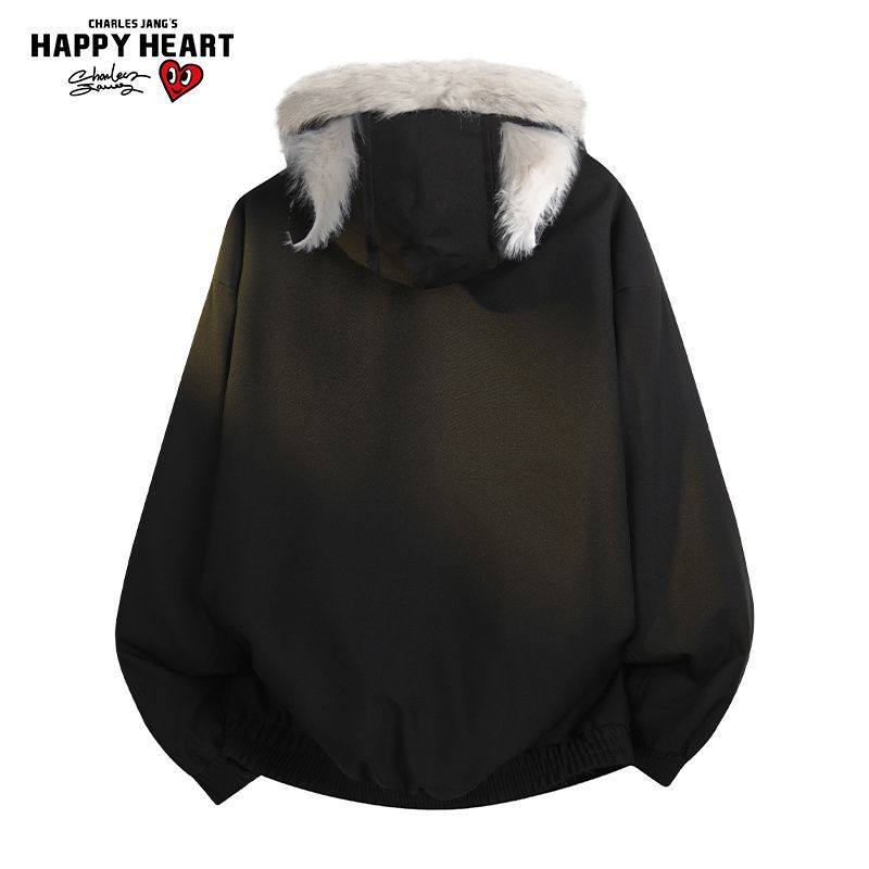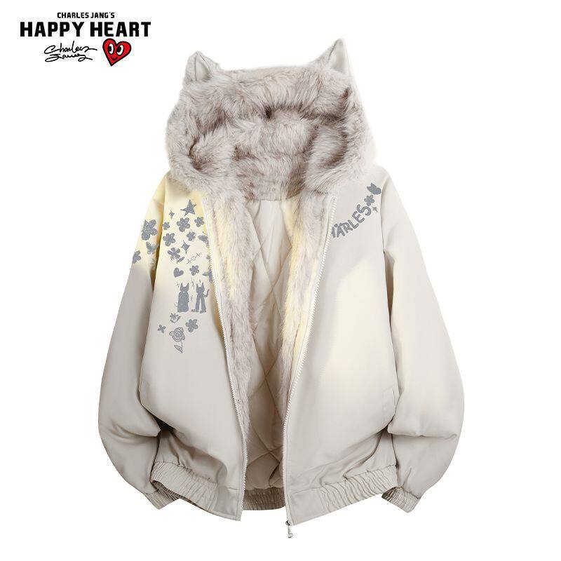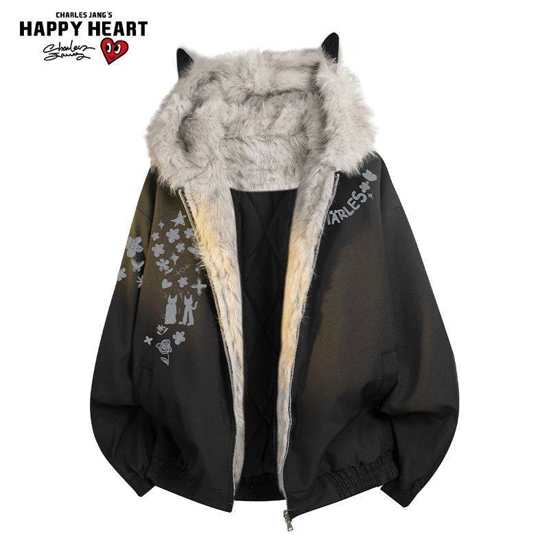 📚 查尔斯桃心涂鸦毛领杜宾座山雕棉服男女冬季保暖连帽加厚棉衣外套