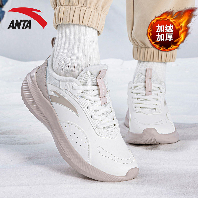 📚 安踏女鞋运动鞋2026冬季新款加绒保暖慢跑鞋皮面防泼耐磨鞋子女款