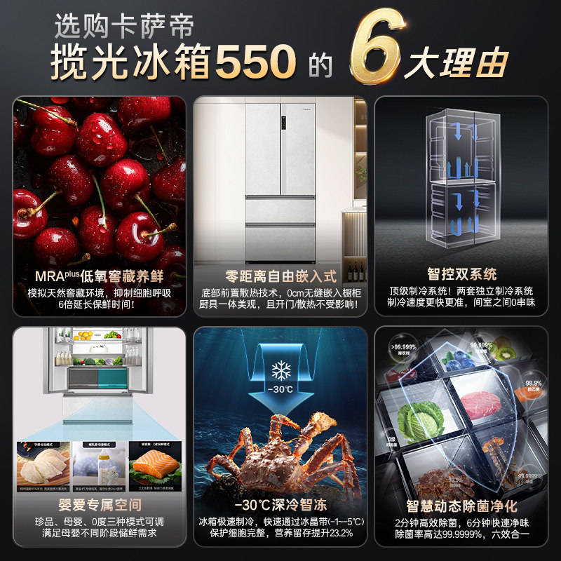 📚 以旧换新卡萨帝揽光冰箱550L零嵌法式四门一级嵌入式超薄无霜家用