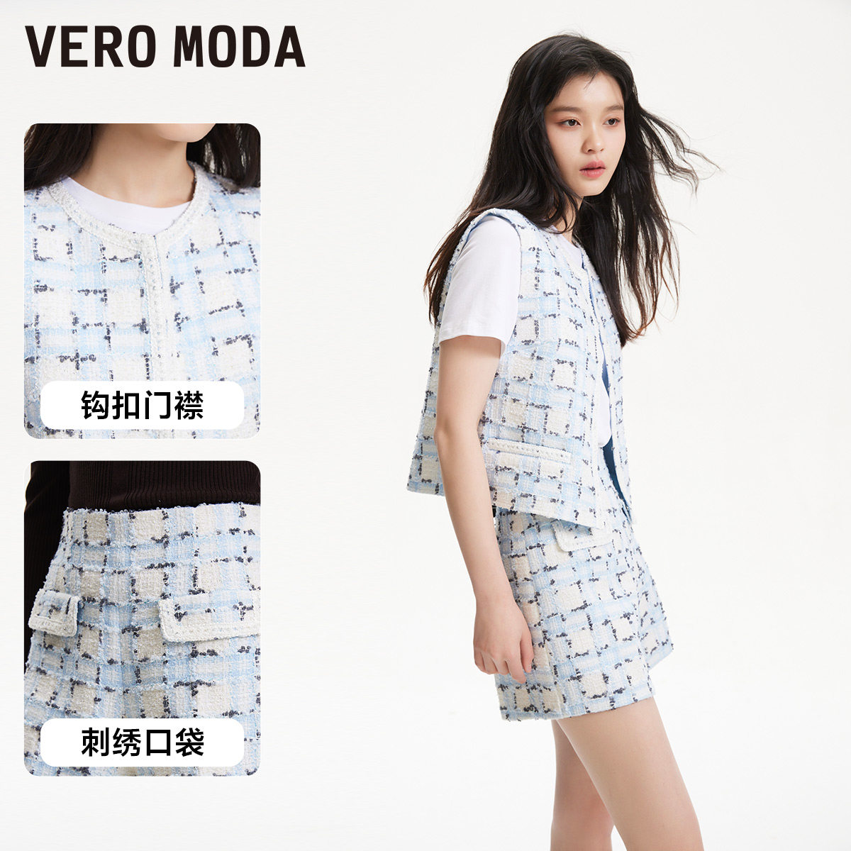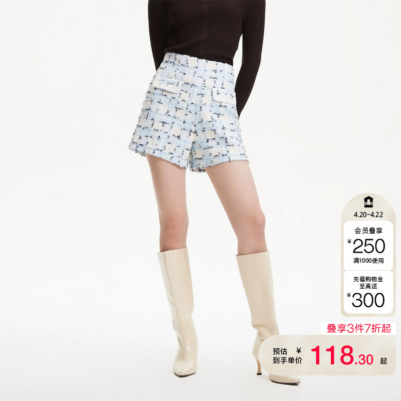 📚 tq区绫致VeroModa小香风短裤春夏粗呢针织色胺蓝色短裤女