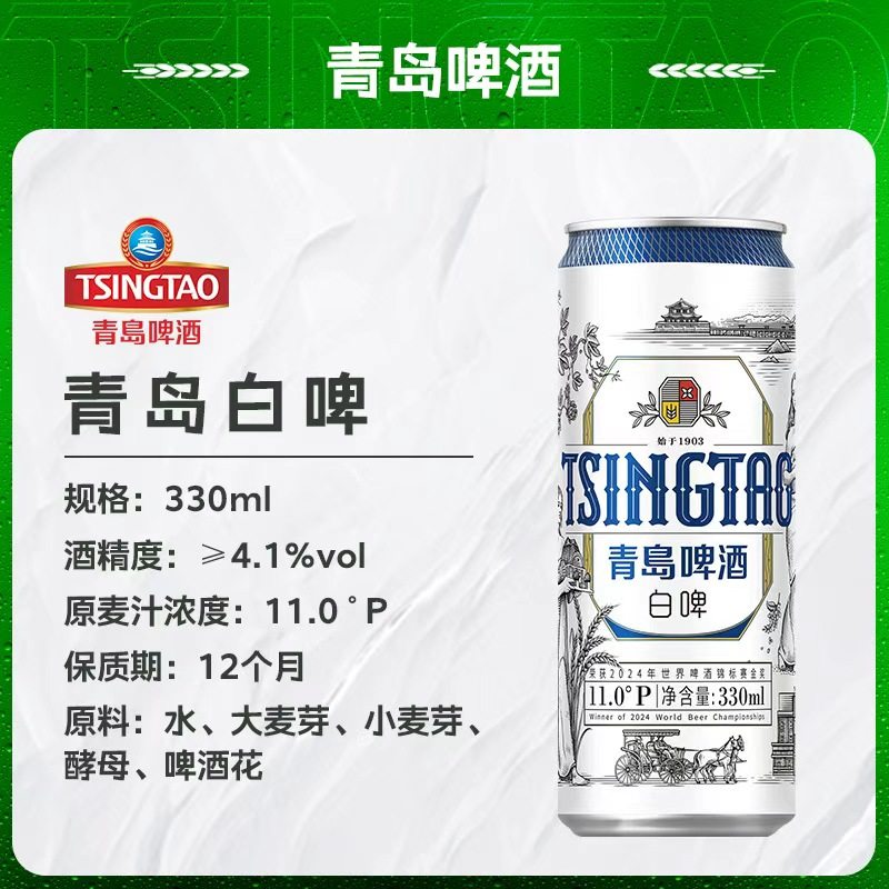 📚 青岛啤酒白啤330ml*6听纤体罐啤 原酿花香精酿全麦白啤小包装