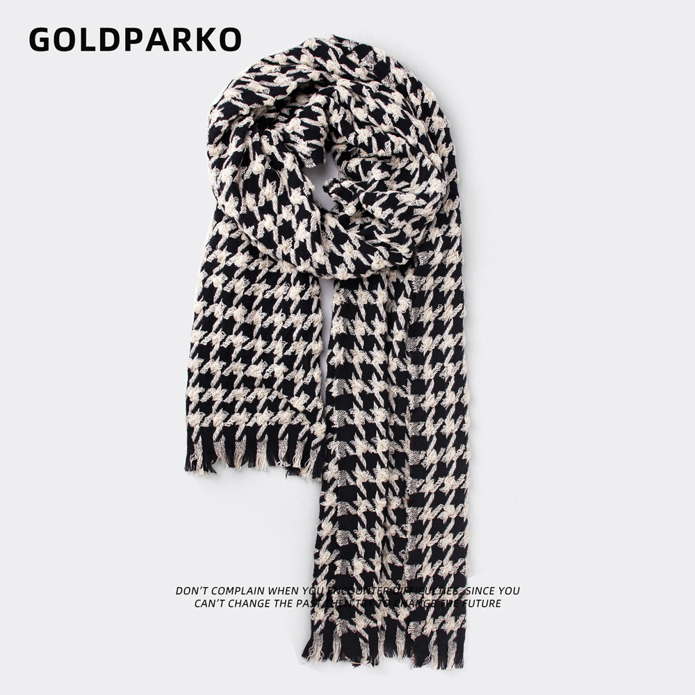📚 围巾女冬季2022冬季新款男韩版百搭黑白棋盘格子冬天保暖千鸟格