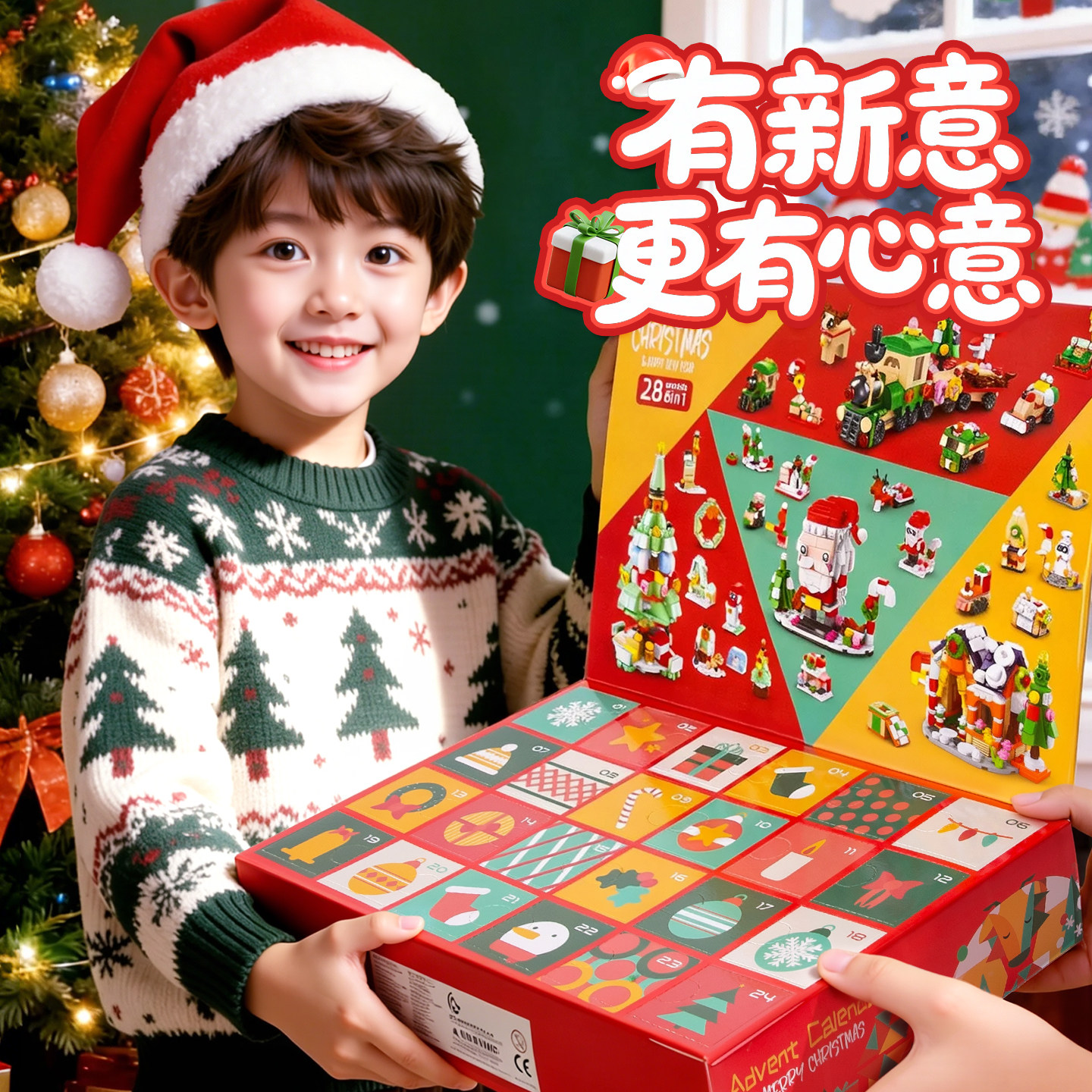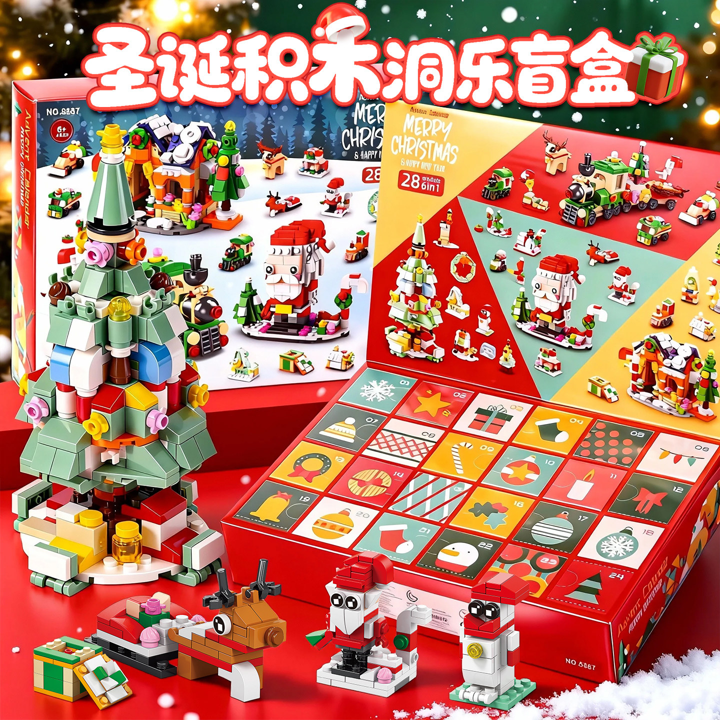 📚 网红爆款圣诞节积木拼装洞洞乐2025新款盲盒小男女孩儿童节日礼物