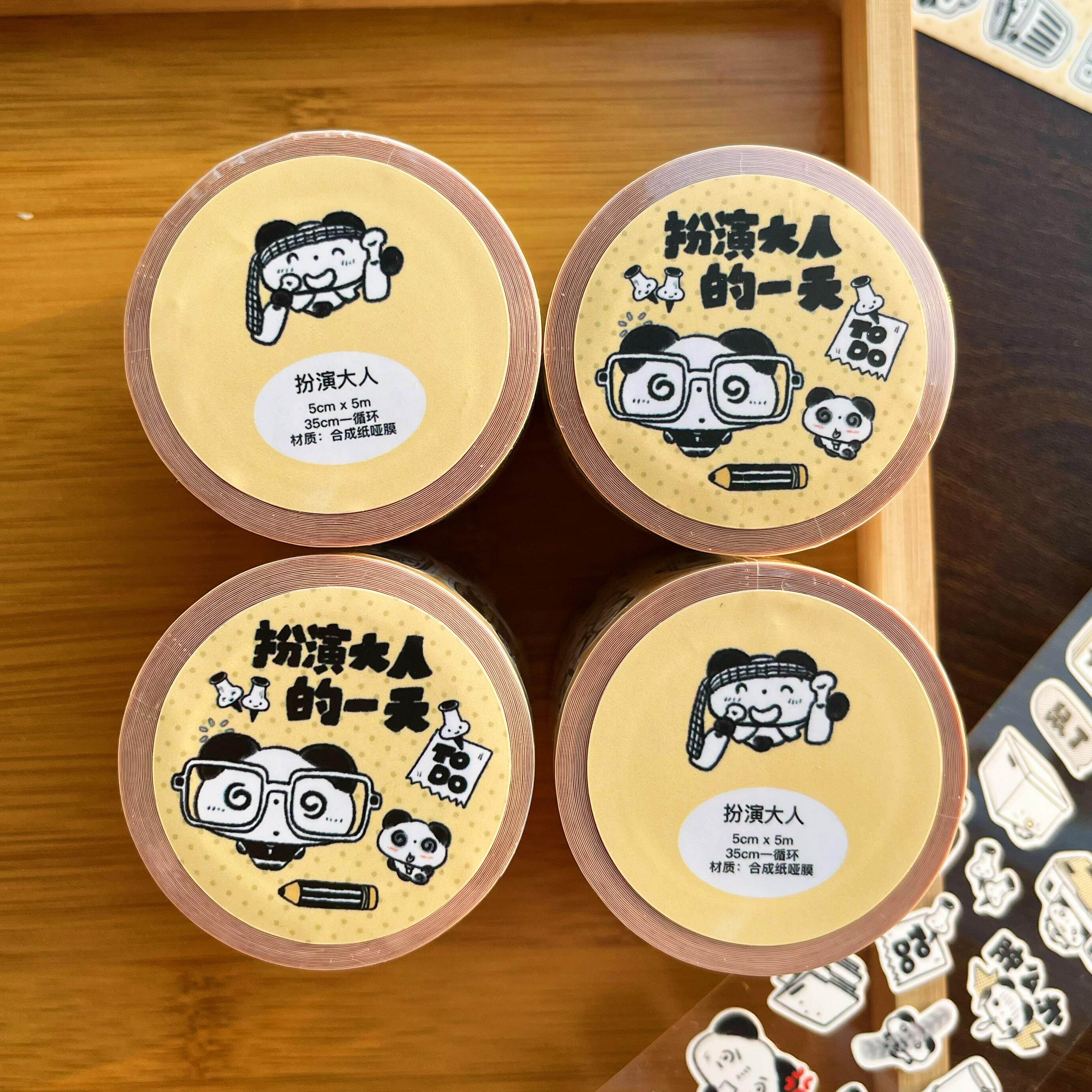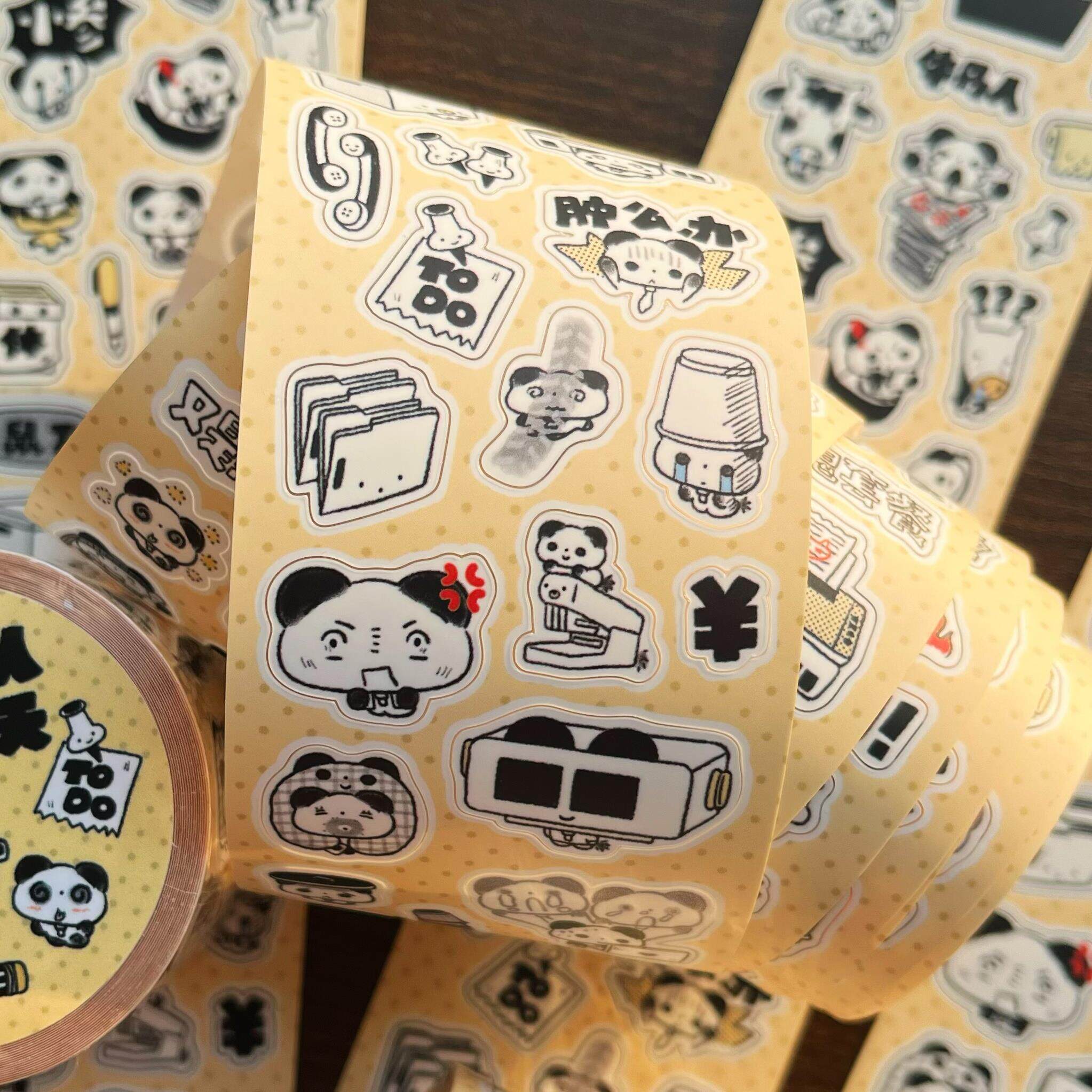 📚 猫牌盐汽水【扮演大人的一天】模切贴纸卷可爱熊猫手帐贴纸