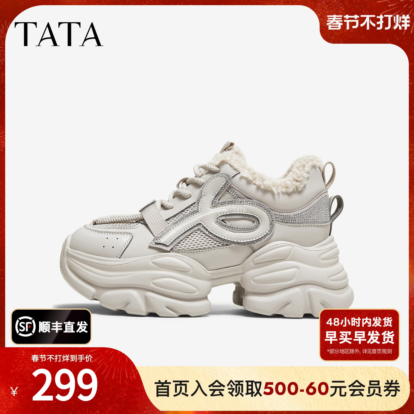 📚 TATA他她女鞋2025冬新款加绒休闲鞋百搭厚底增高老爹鞋CY208DM5