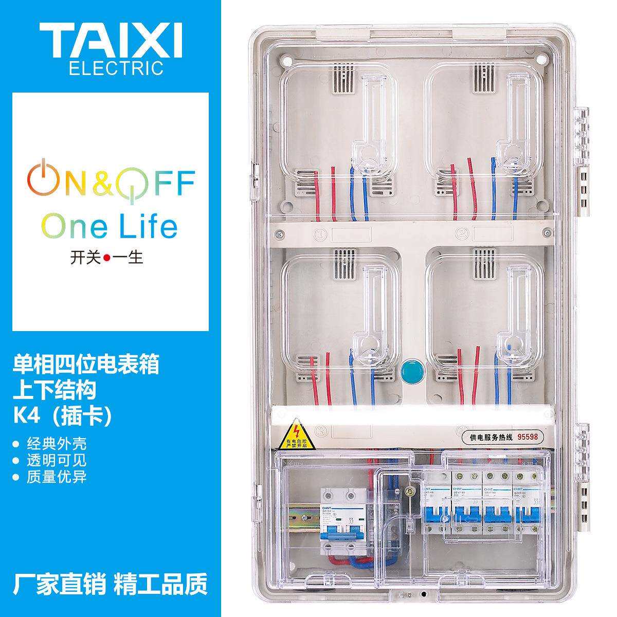 📚 泰西单相四户电子插卡(左/插卡/机械计透+明电表箱PCAS单相4B户透
