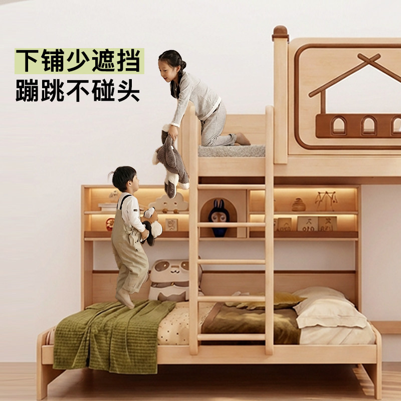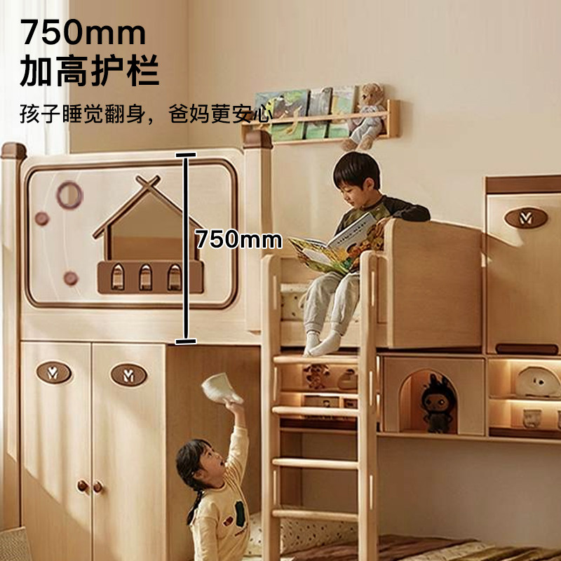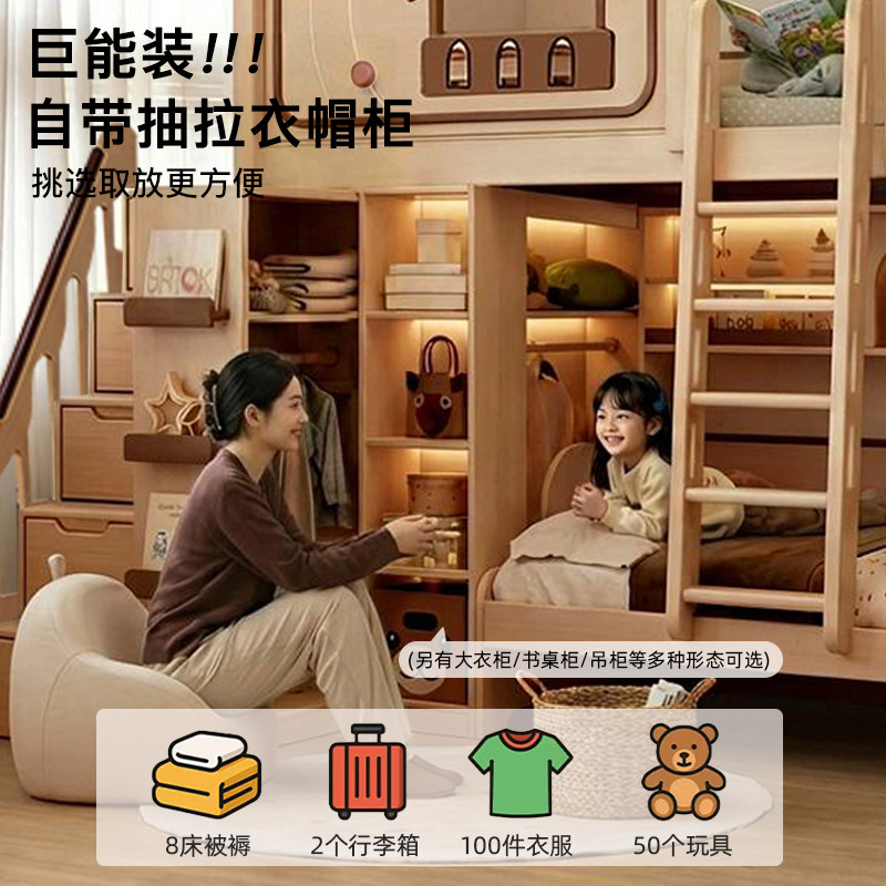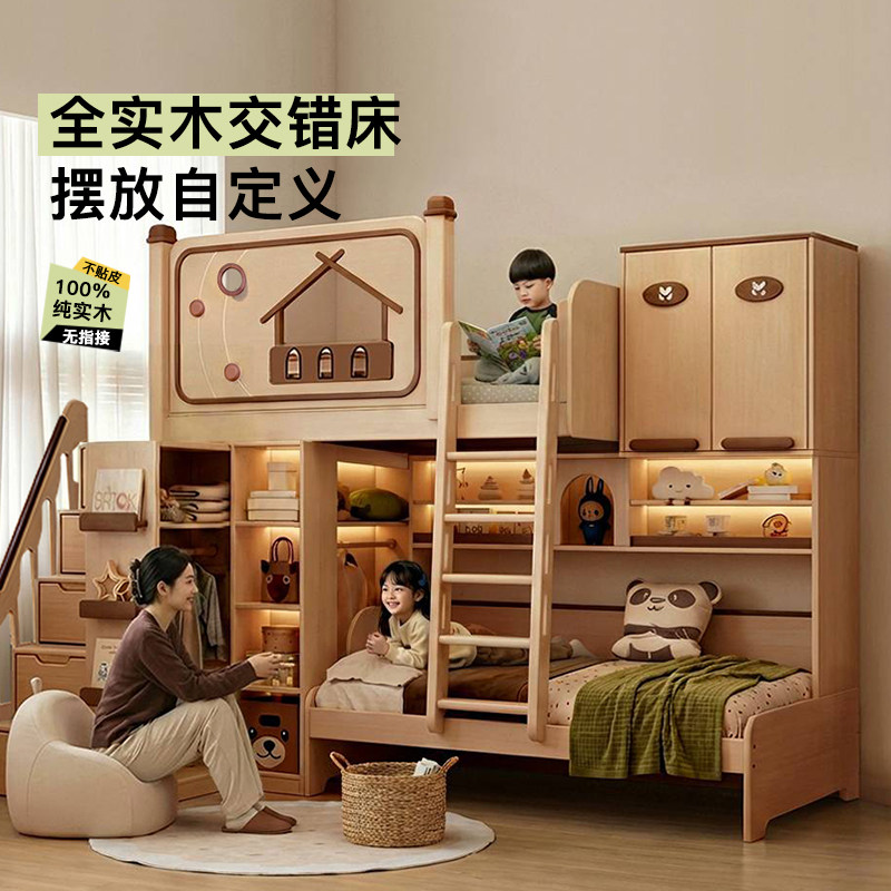📚 考拉森林小户型交错式上下床抽拉衣柜全实木错位儿童上下铺双层床