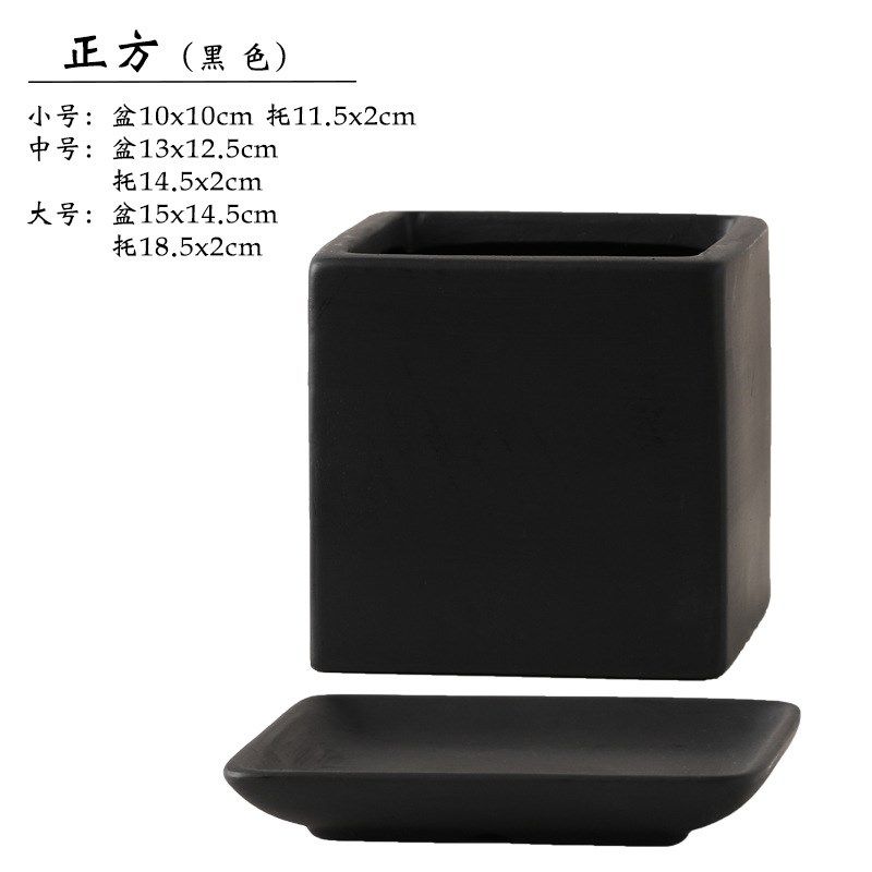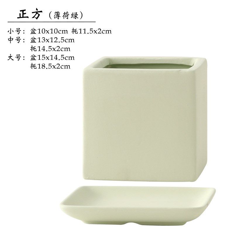 📚 加伦花盆平面高正方形陶瓷带托盘北欧莫K兰迪纯色大小号多肉绿植