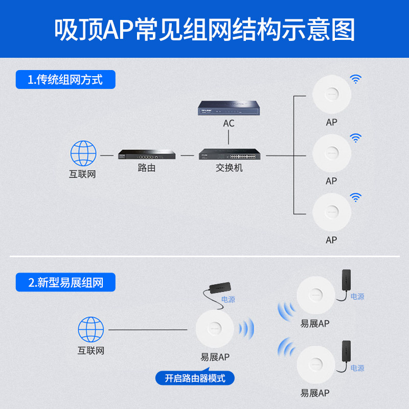📚 TP-LINK无线吸顶AP千兆双频AX3000企业WiFi6路由器XAP3007GC/XAP5407GC/XAP3607GC/XAP3020GC-POE/DC易展版