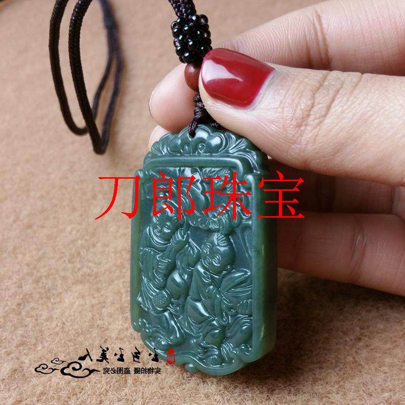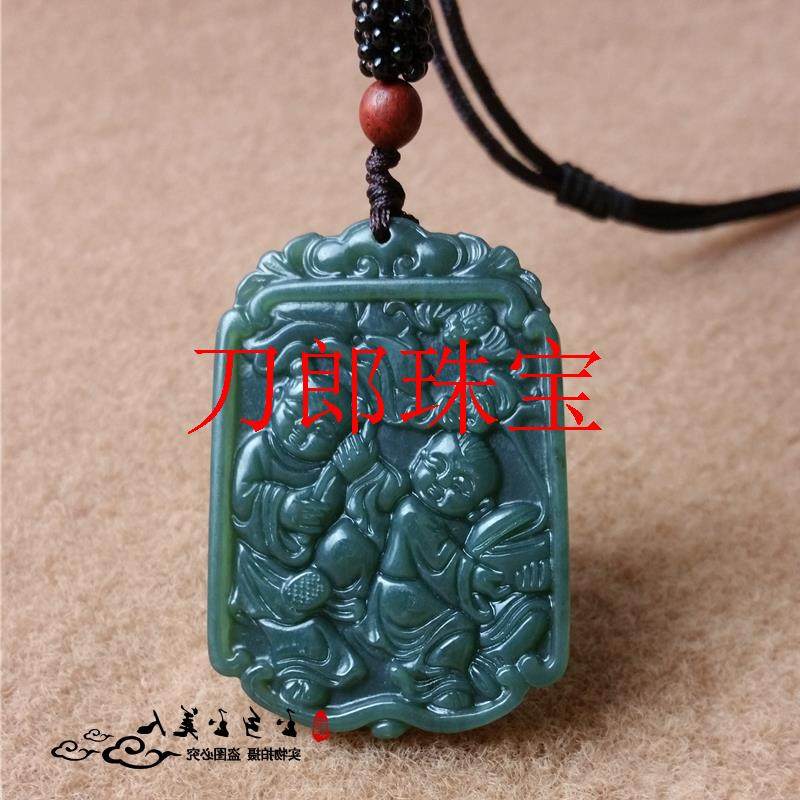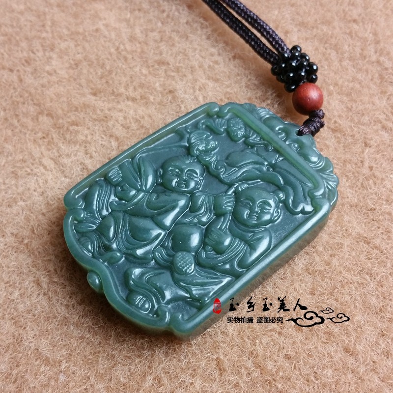 📚 高品质和田玉青玉合佳欢项链青玉吊坠玉挂件十八罗汉项链挂件男款
