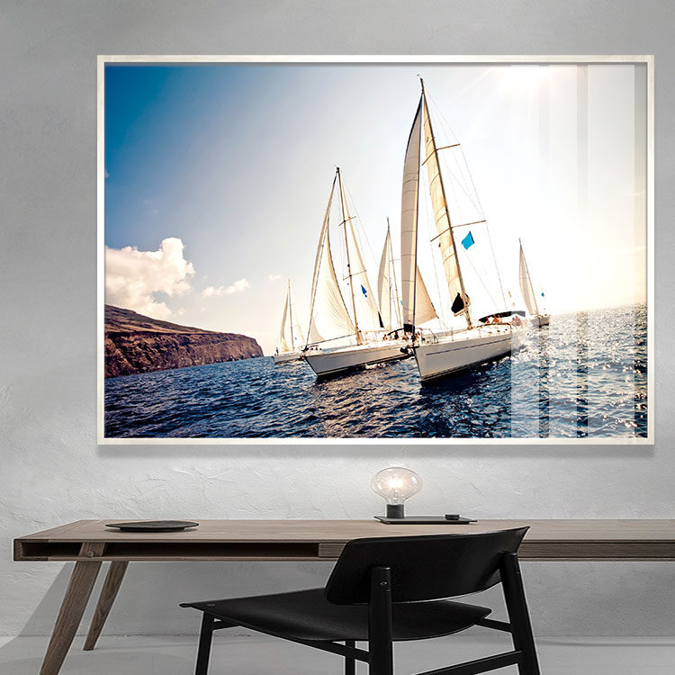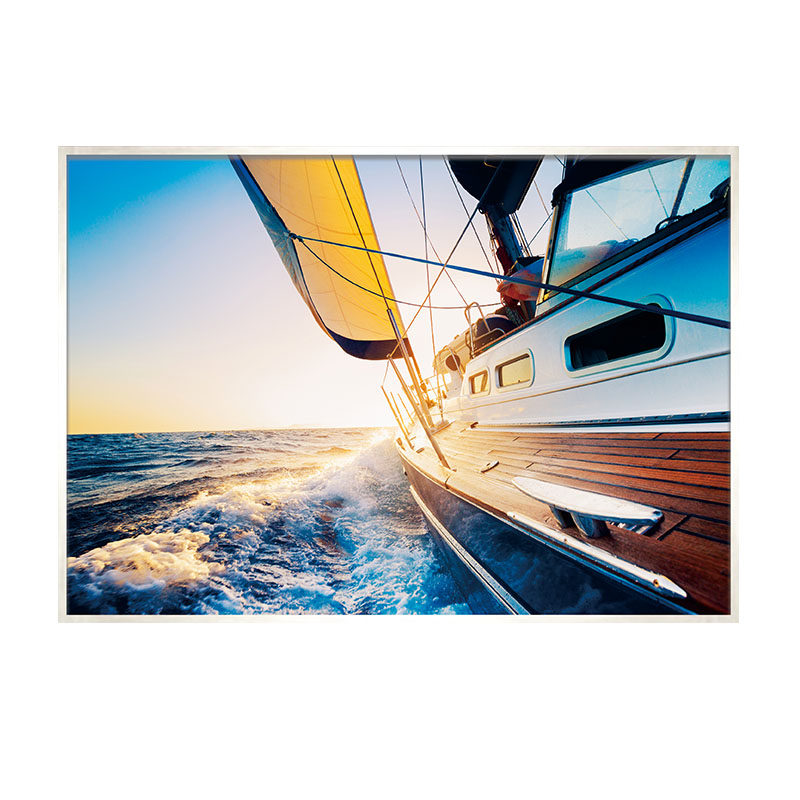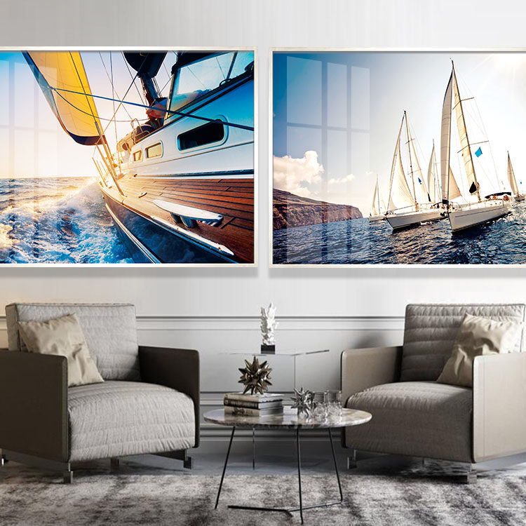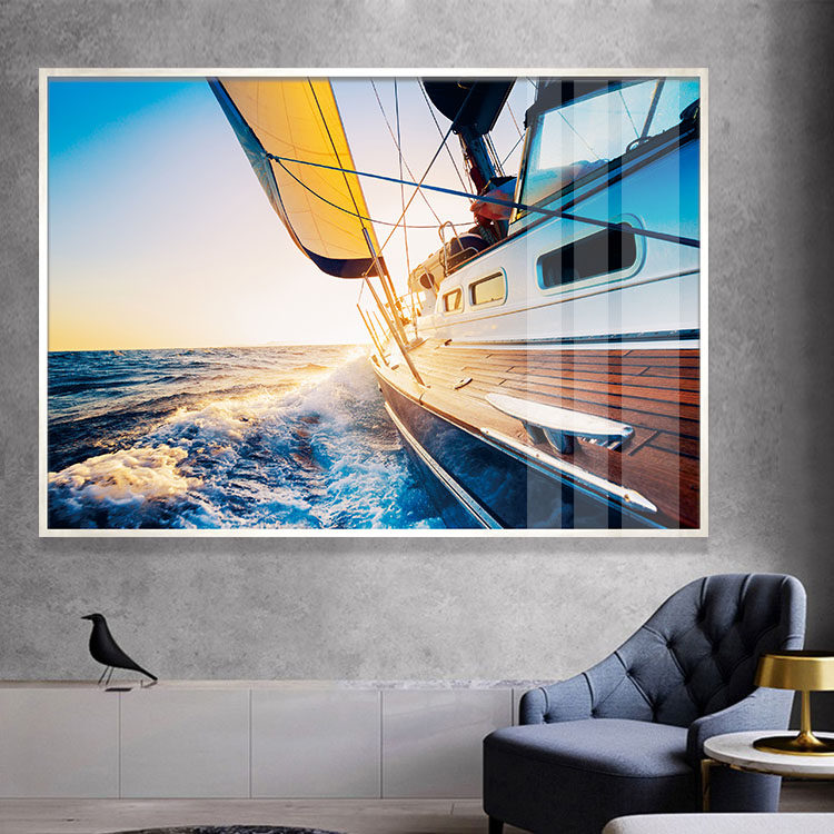📚 游艇出海风景软装饰画现代轻奢晶瓷画家庭餐厅长方形横向单幅挂画