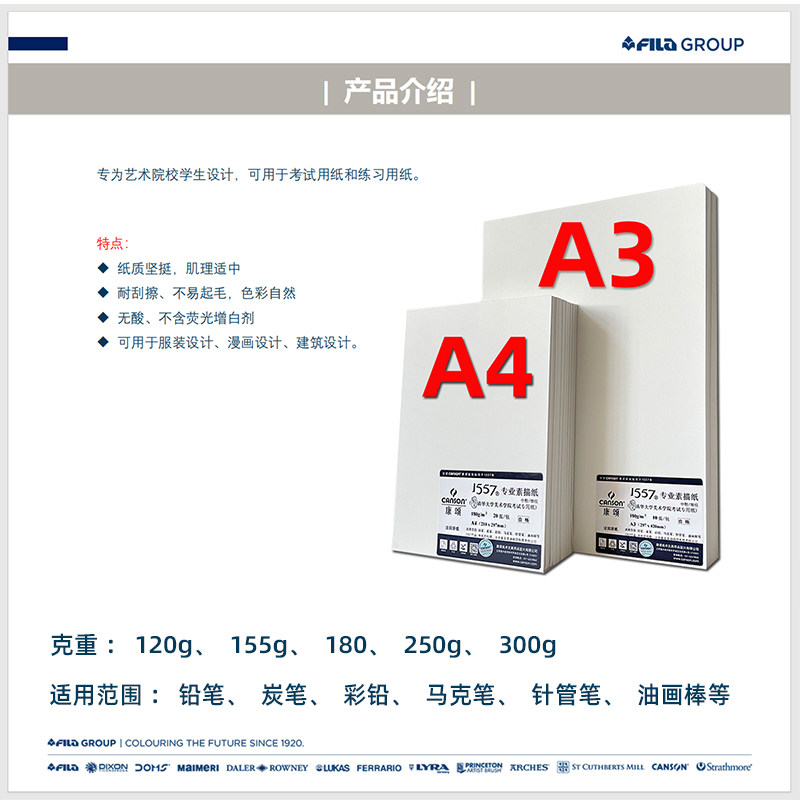 📚 canson康颂1557专业素描纸绘画纸考试纸A3A4速写纸单张中粗细纹纸