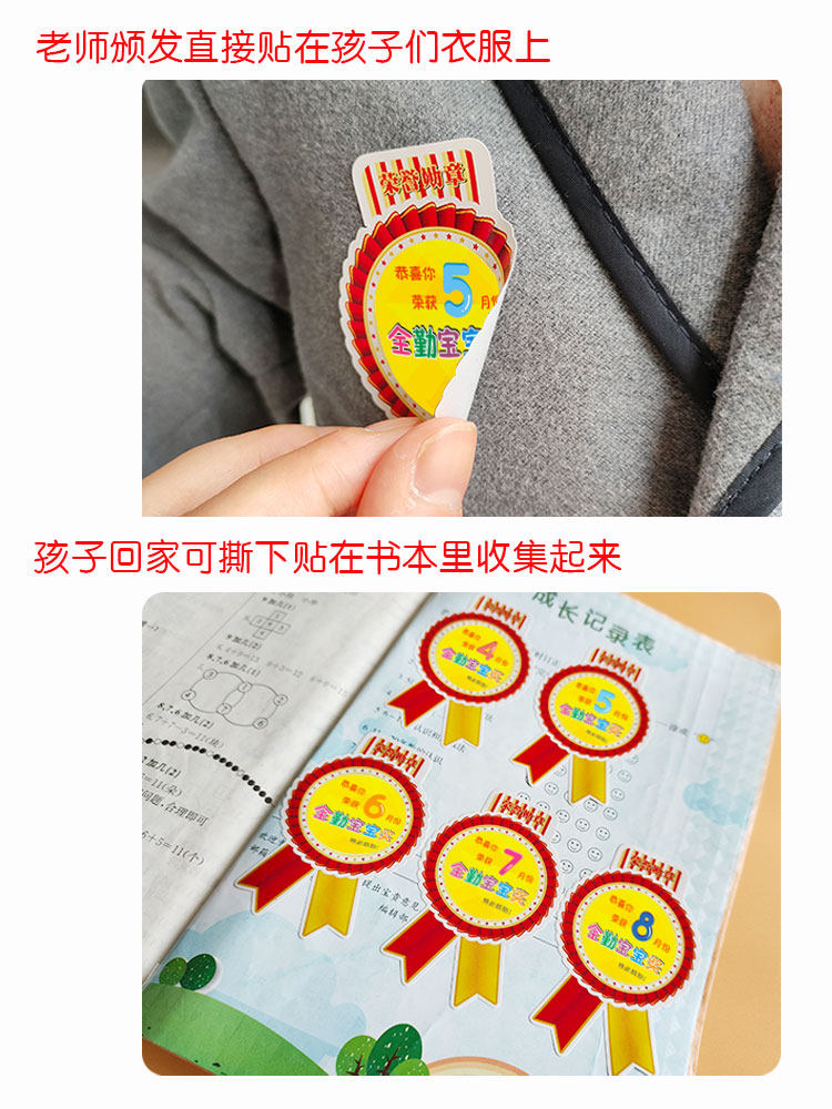 📚 幼儿园全勤宝宝奖状升班荣誉勋章贴纸定制迷你小奖章奖励贴纸胸章大表扬贴徽章胸贴学生小红花奖牌贴纸订制