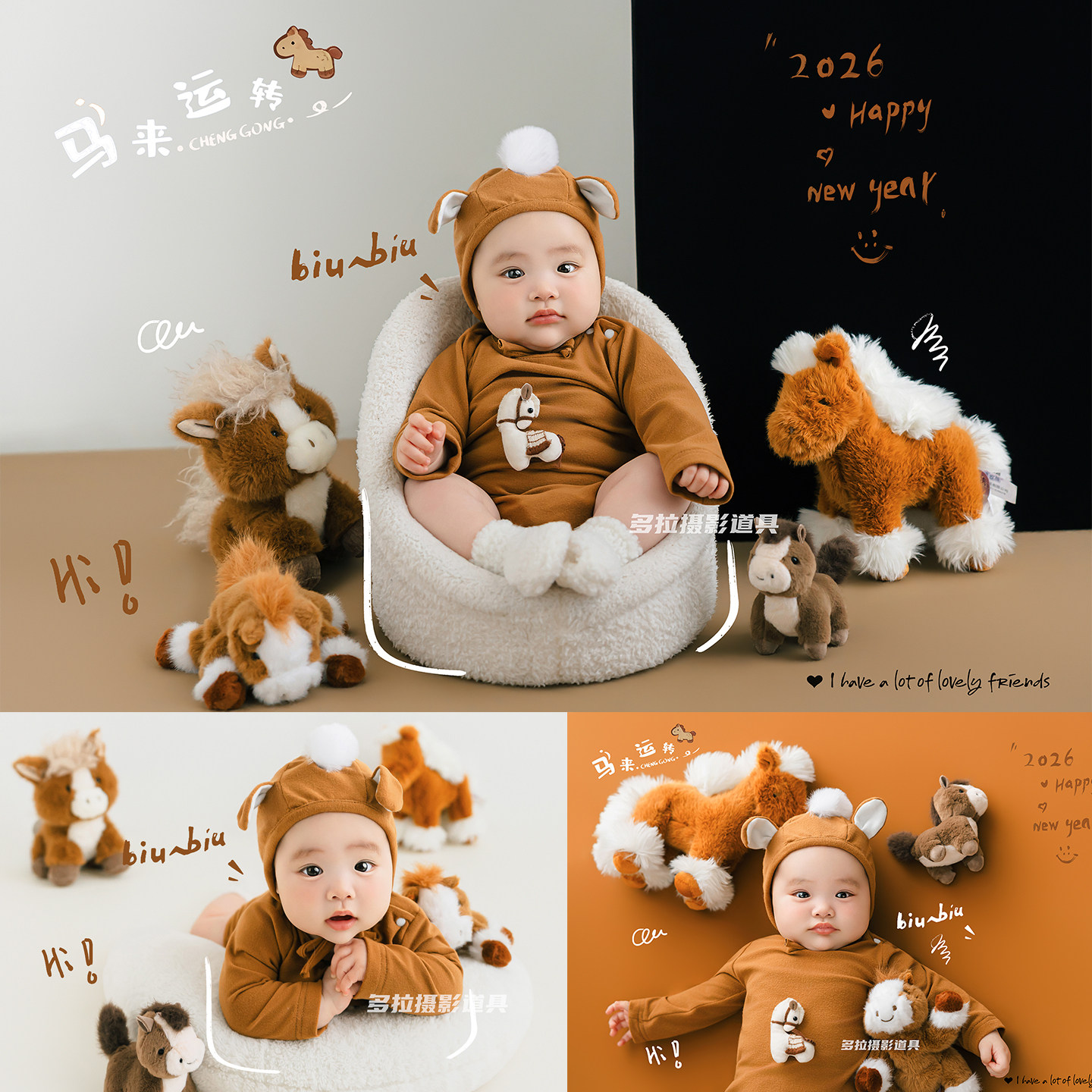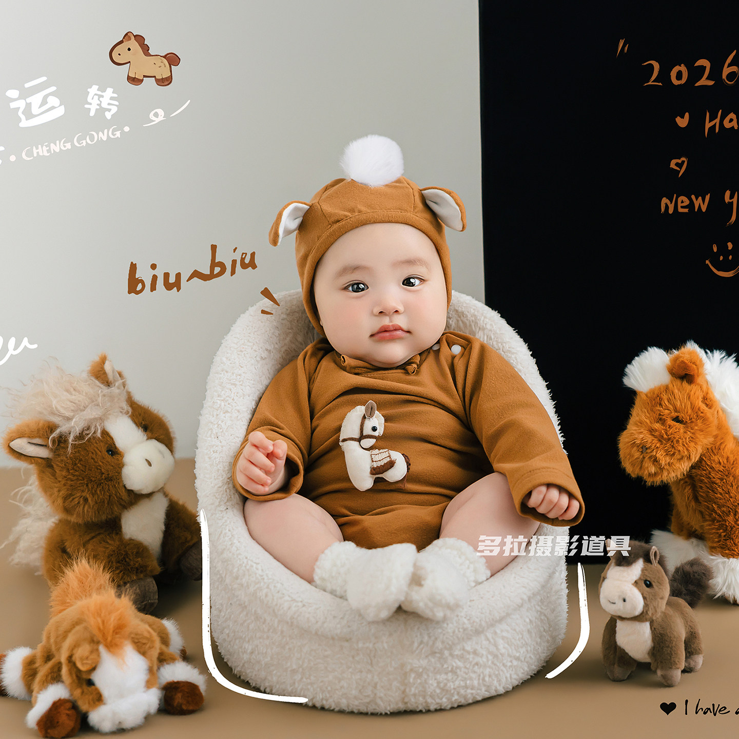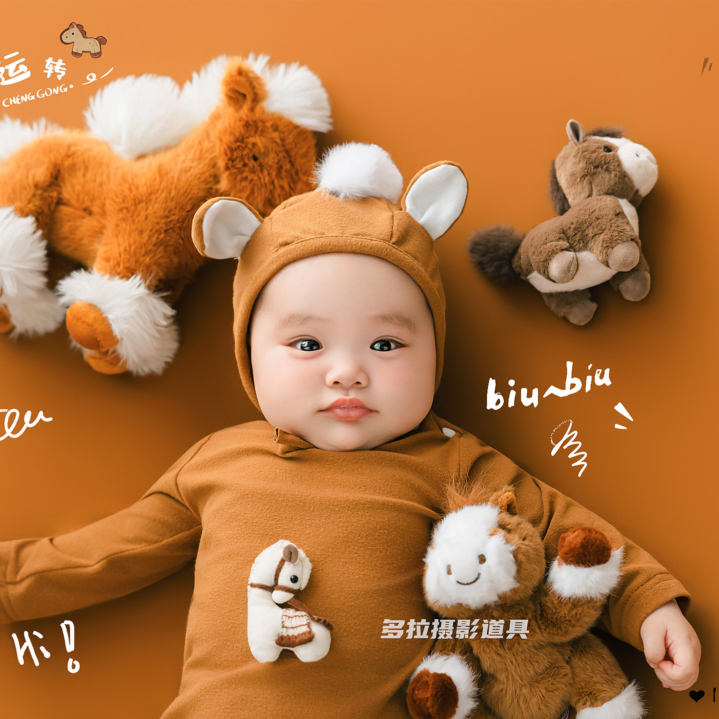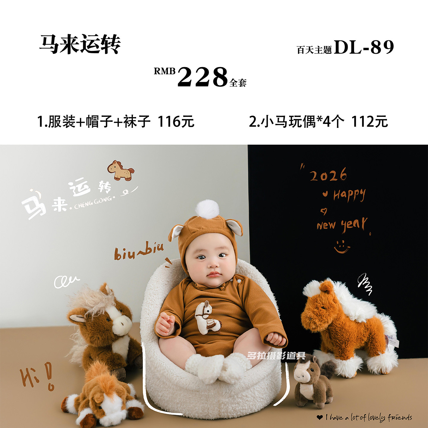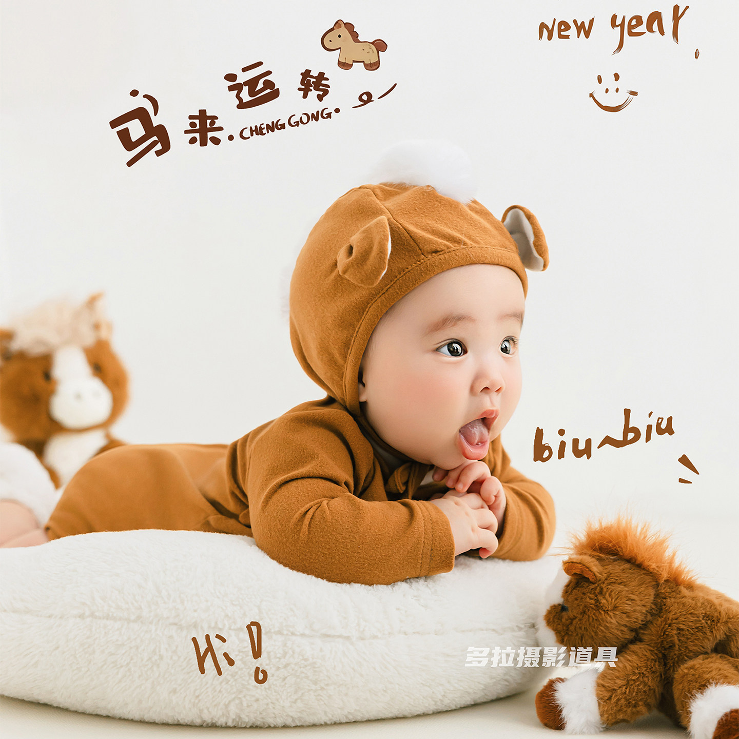 📚 马年宝宝百日照主题 影楼儿童100天拍照衣服百岁照艺术照玩偶道具