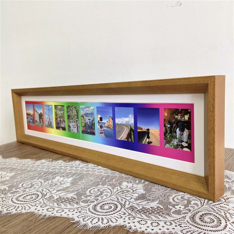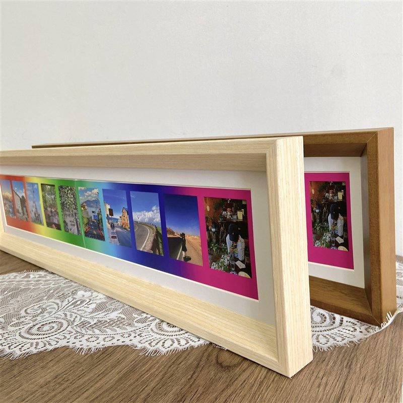 📚 拍立得相框彩虹相纸专用画框实木长条相框mini3寸摆台挂墙照片框