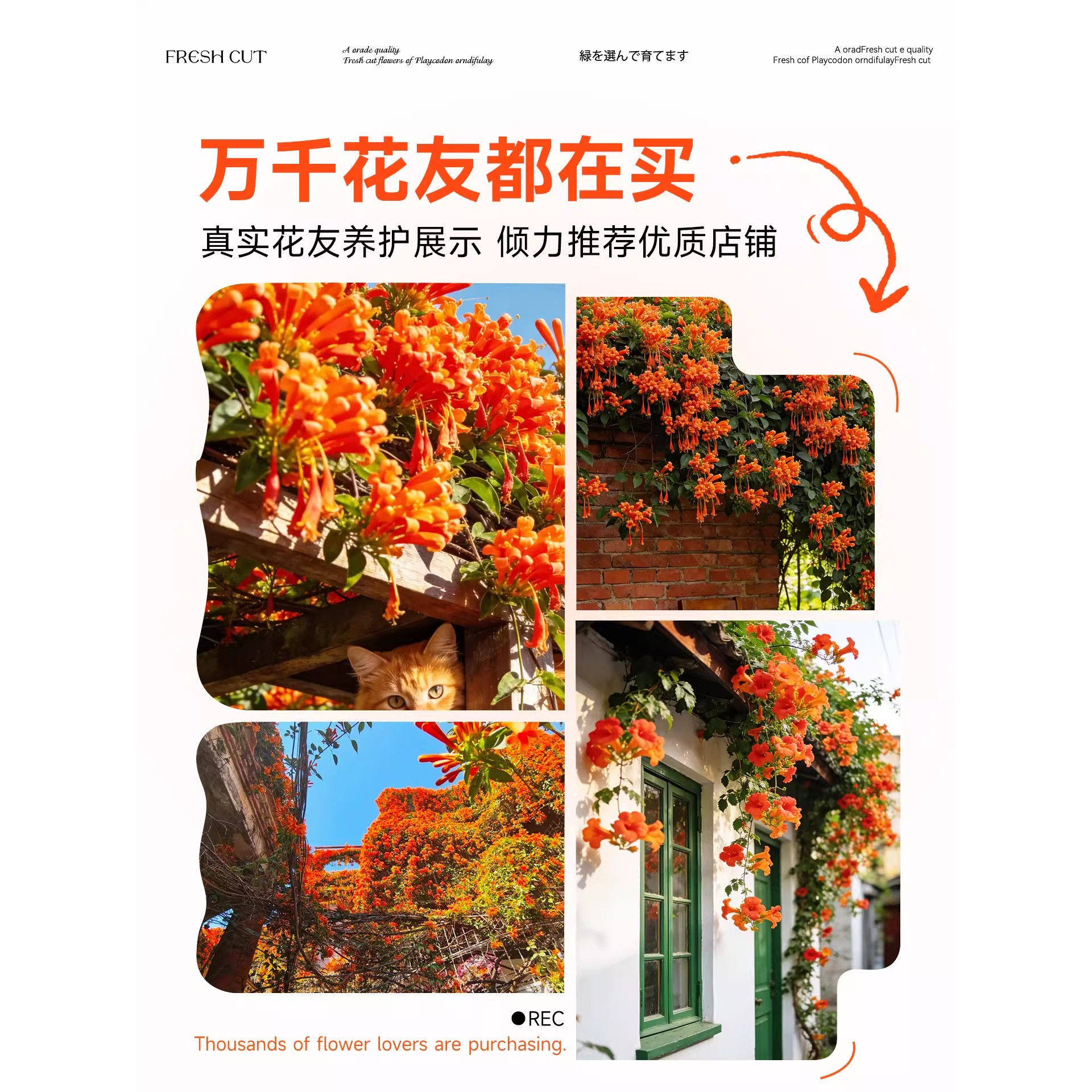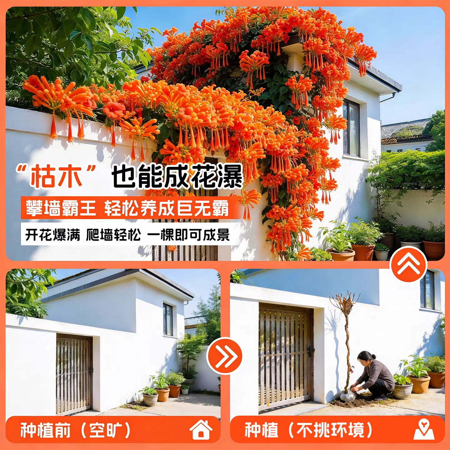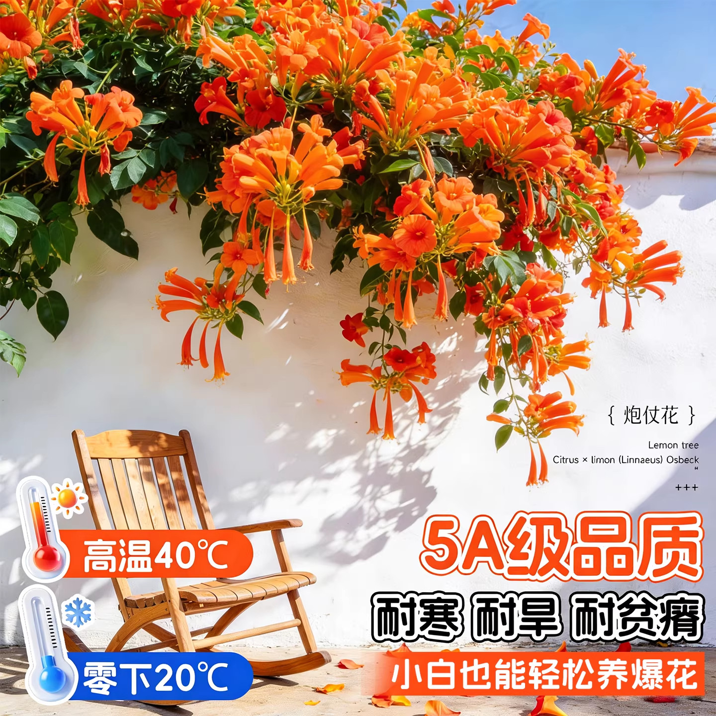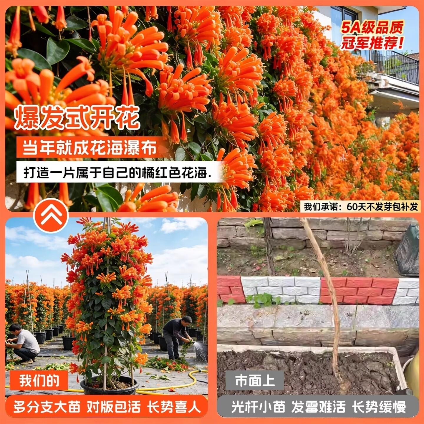 📚 炮仗花爬藤植物鞭炮花苗四季开花老桩大苗全国可种阳台庭院凌霄花
