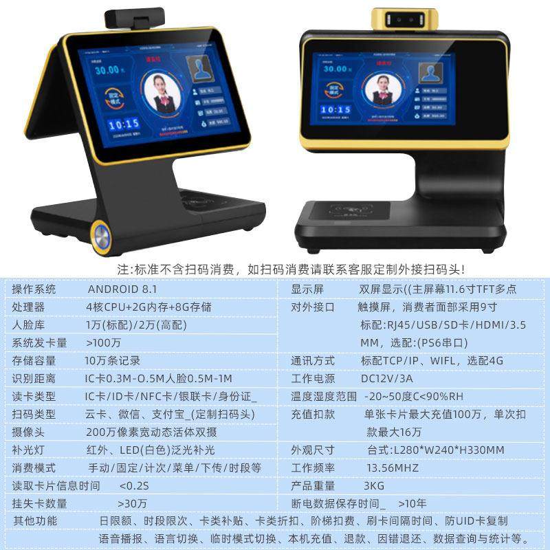 📚 智能彩屏饭厅食堂人脸识别消费机刷卡扫码一体收款机饭堂售饭机扫