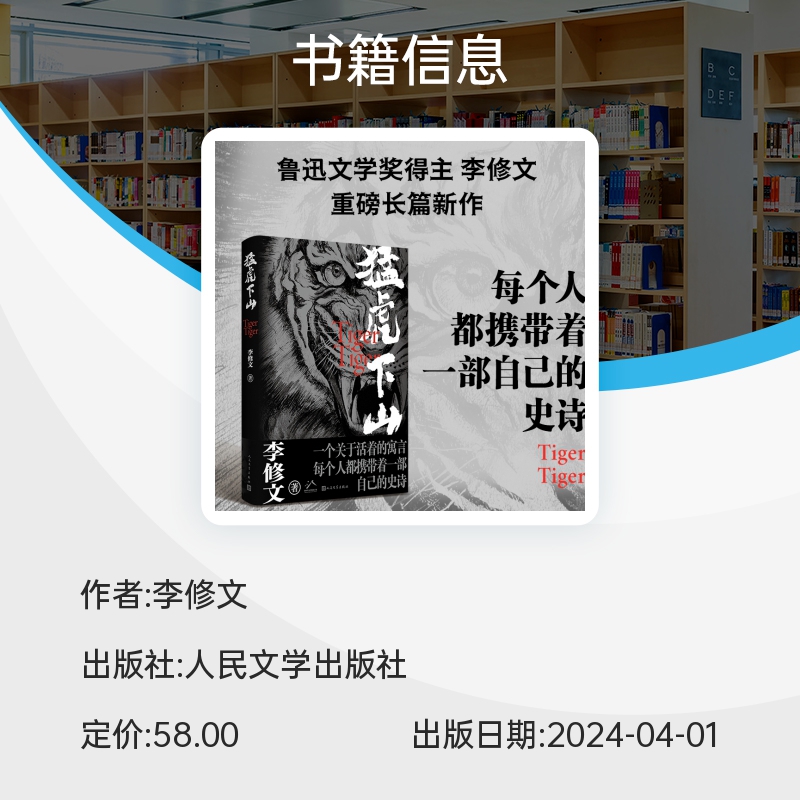 📚 官方正版 猛虎下山 李修文著 鲁迅文学奖得主李修文沉潜多年推出长篇新作 人性的变异与时代精神互为显影 人民文学出版社畅销书籍