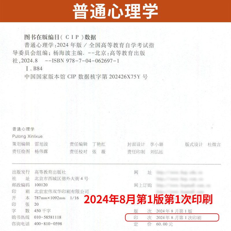 📚 自学考试教教材02106普通心理学杨海波高等教育出版社2026年成人自考成考成教大专升本科专科套本专升本复习资料题库
