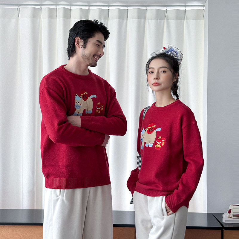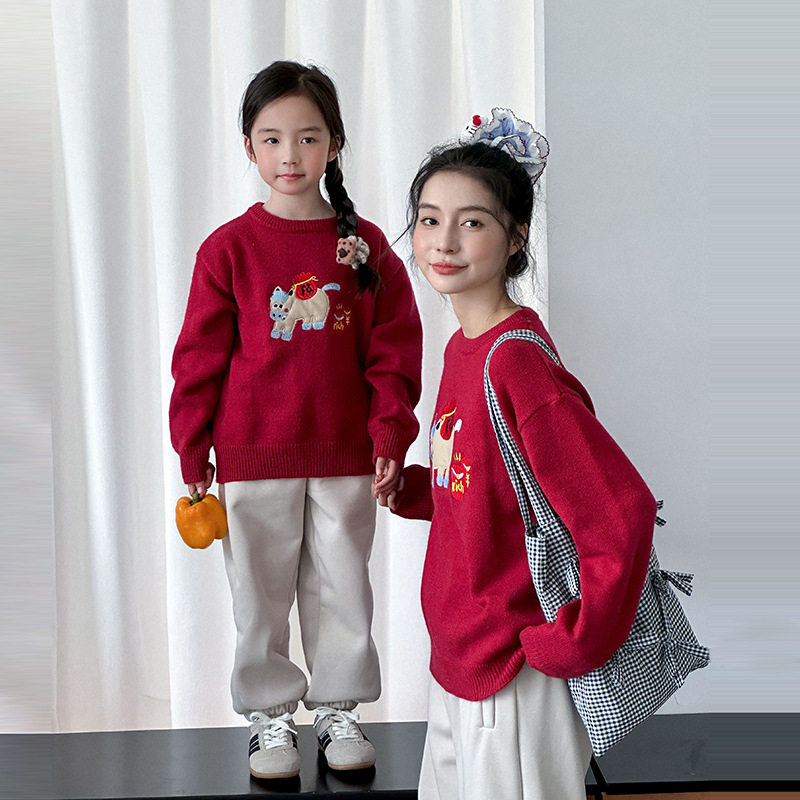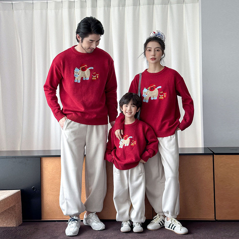 📚 亲子装一家三口红色毛衣2026新年马年炸街高级感针织衫母女母子装