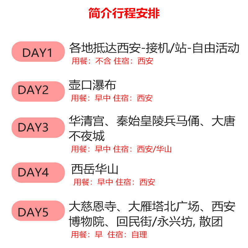 📚 【包含往返机票】西安旅游5天4晚跟团游华山壶口瀑布兵马俑五日游