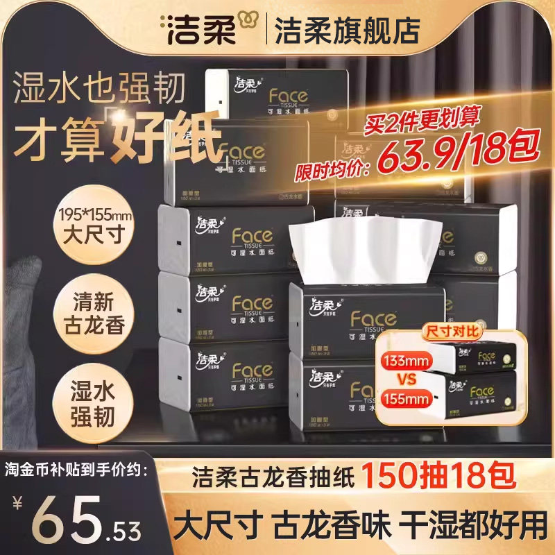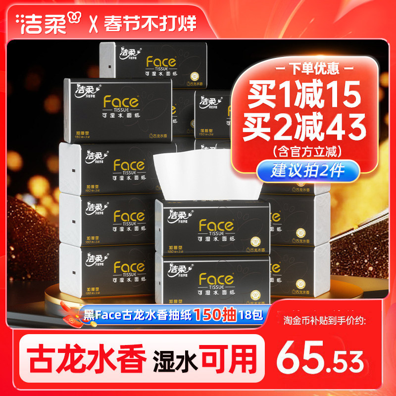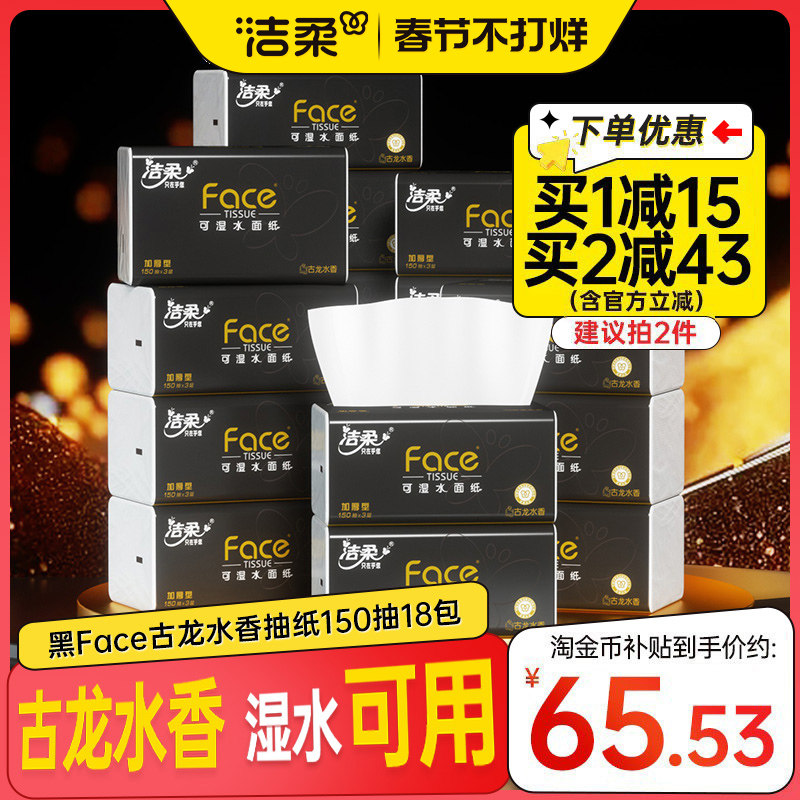 📚 洁柔纸巾抽纸3层Face黑面子古龙香味抽纸150抽/包*18包家用面巾纸