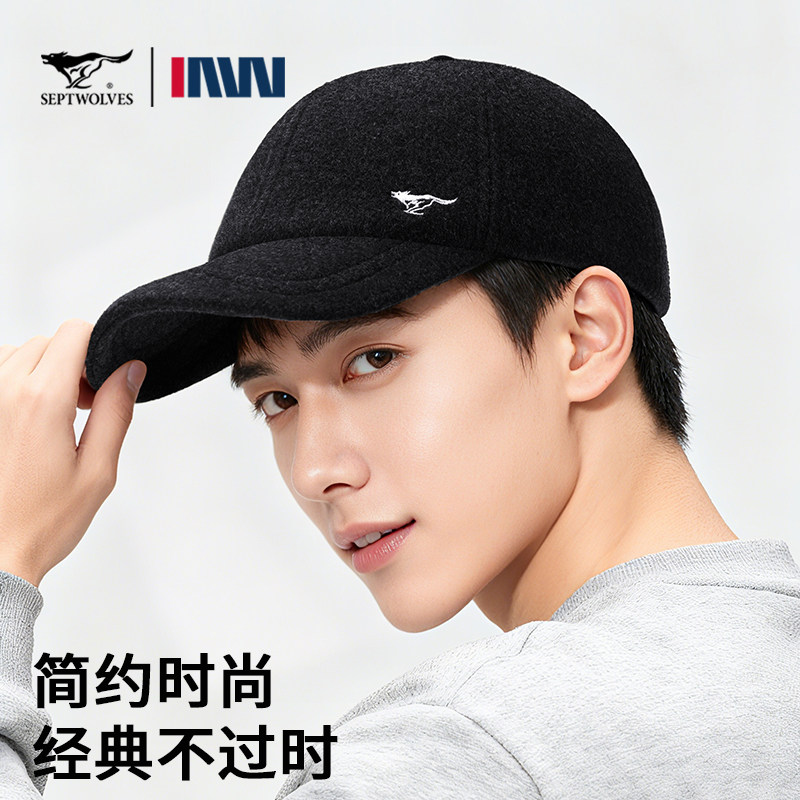 📚 七匹狼羊毛帽子男士青年棒球帽秋冬季防风御寒加厚保暖护耳鸭舌帽