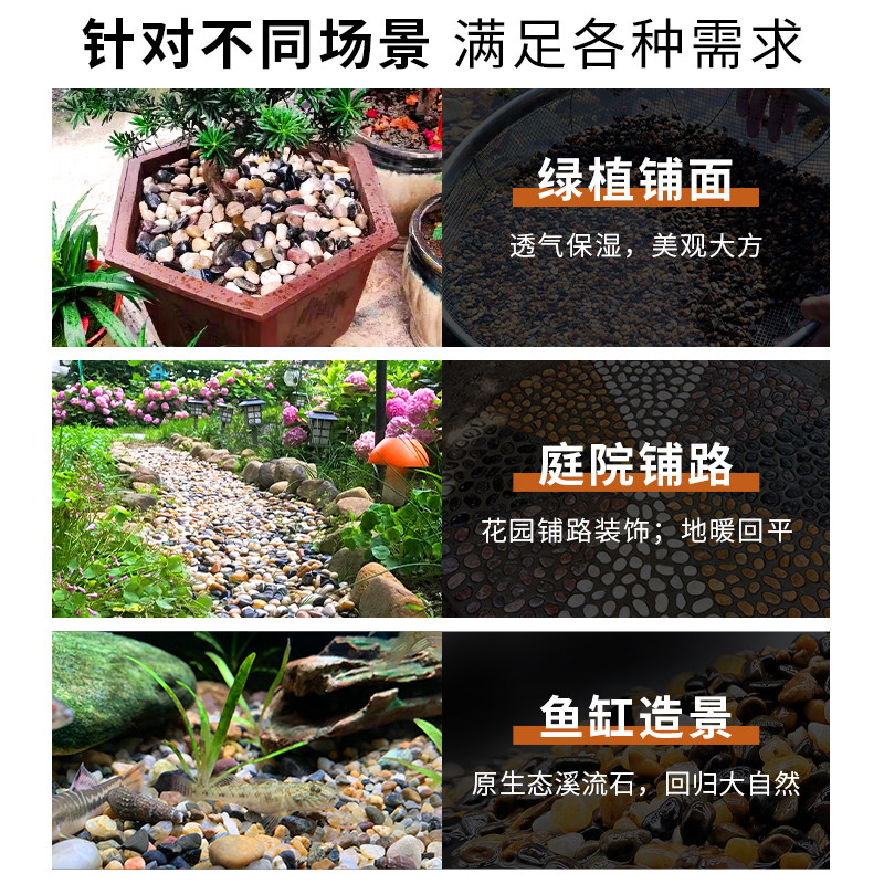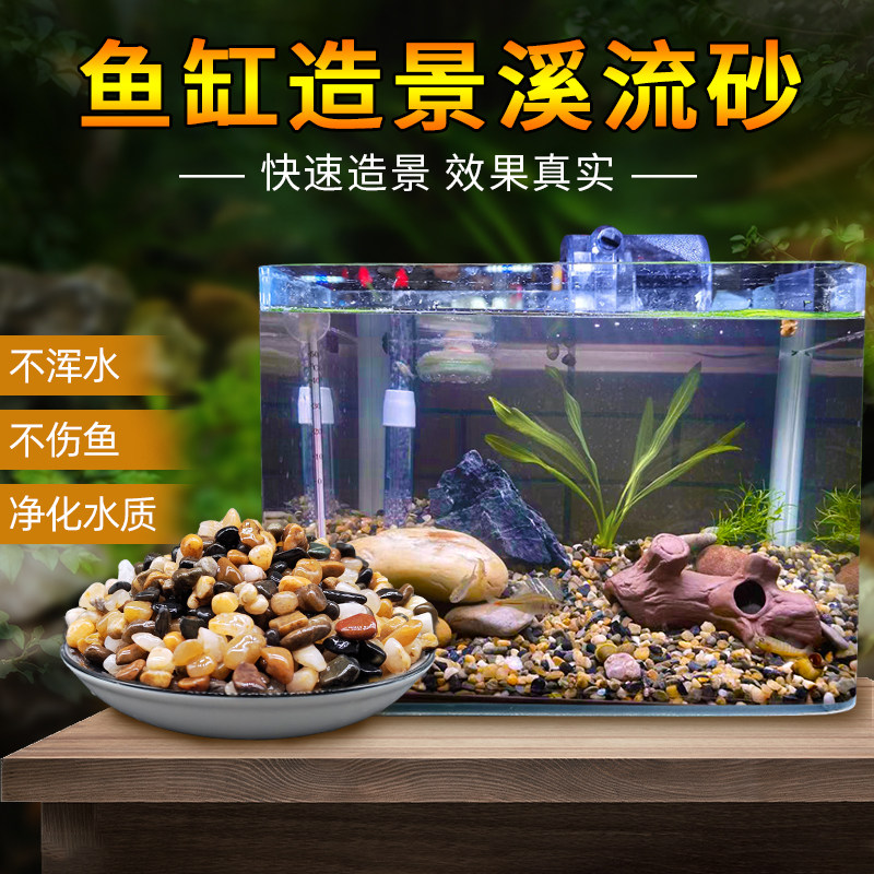 📚 免洗鱼缸底砂溪流石鹅卵石原生水族鱼缸底部火山石装饰五彩石豆石