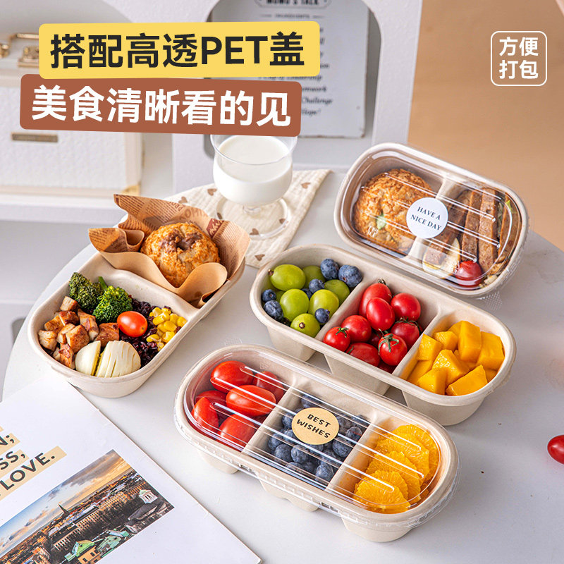 📚 水果打包盒一次性餐盒春游野餐露营便当轻食减脂切饭双格分隔户外