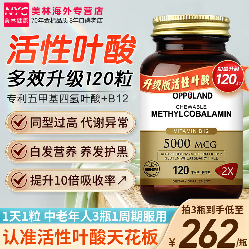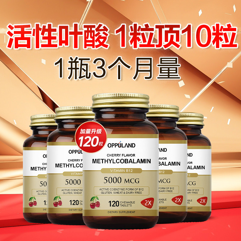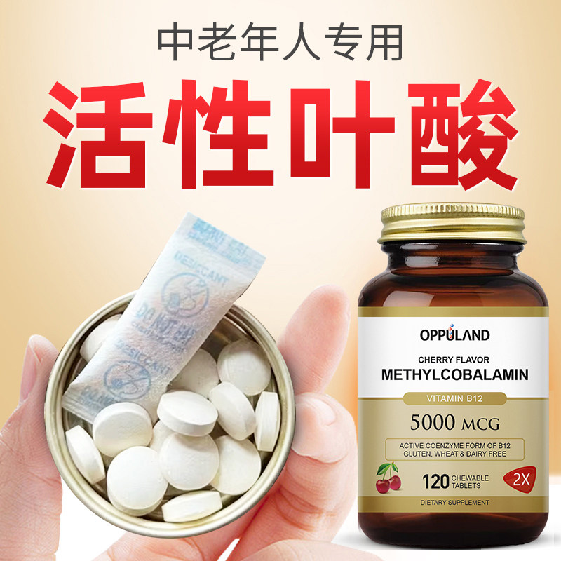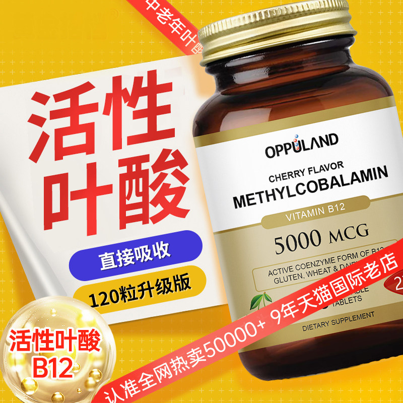📚 叶酸片维生素b12美国原装进口中老年活性叶酸甲钴胺男女OPPULAND