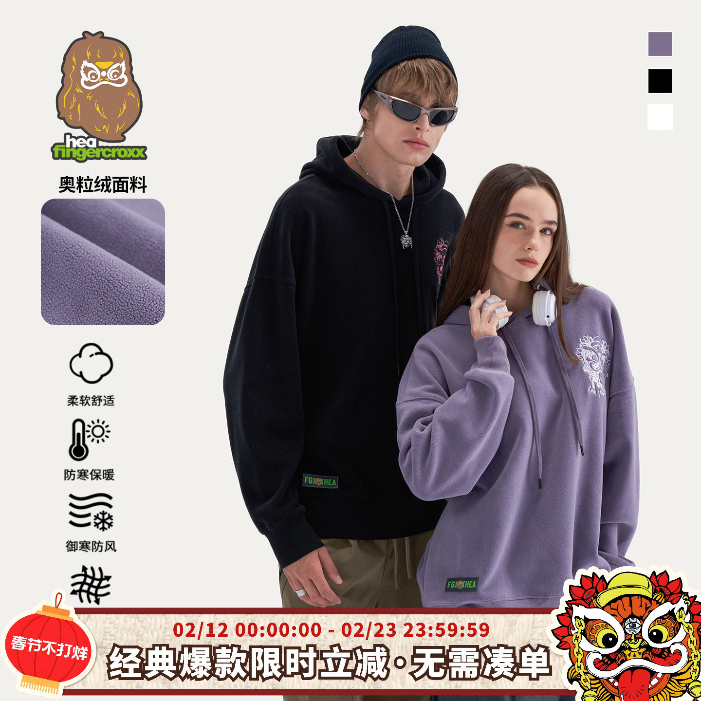 📚 HEAx i.t fingercroxx联名新款秋冬醒狮连帽卫衣落肩袖宽松情侣款