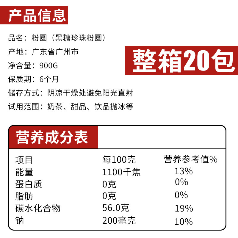 📚 天源黑糖珍珠奶茶店专用粉圆 黑糖味珍珠波霸 整箱900g*20包商用