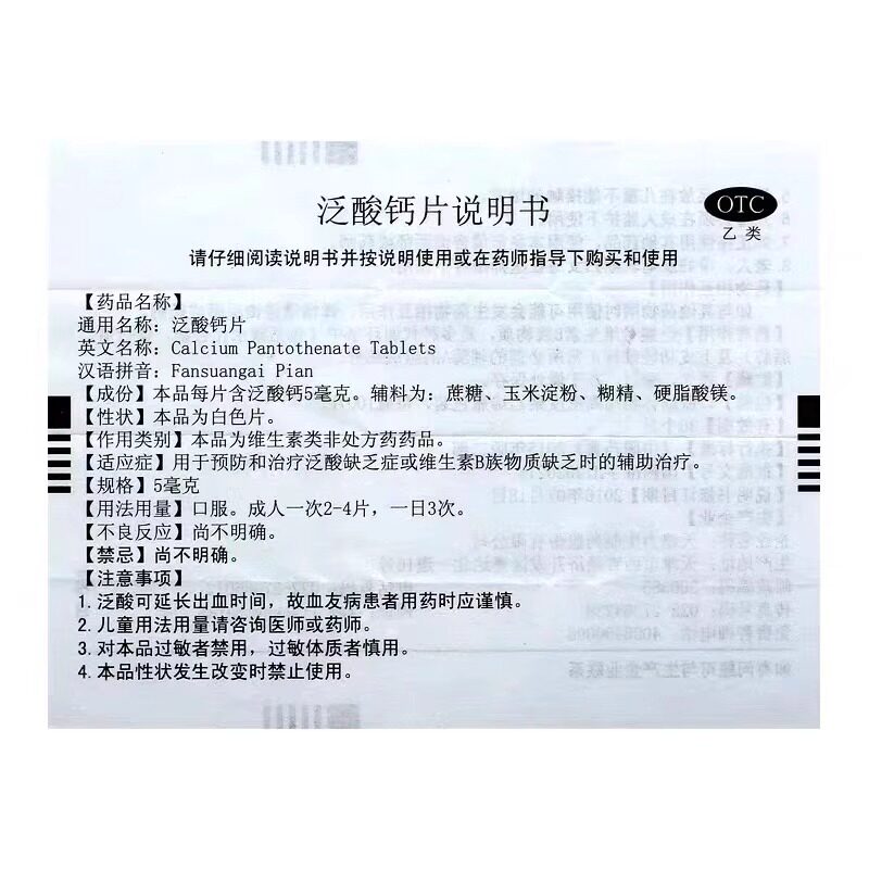 📚 力生泛酸钙片100片正品原维生素b5药片泛酸片旗舰店复合维生素b族