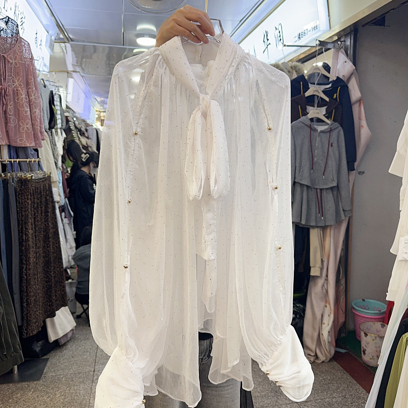 👕 穿上这件衬衫,仿佛整个世界都变得温柔起来。透视的设计更是让人眼前一亮,仿佛仙气缭绕。而那飘带上的烫钻更是增添了几分精致与高级感。