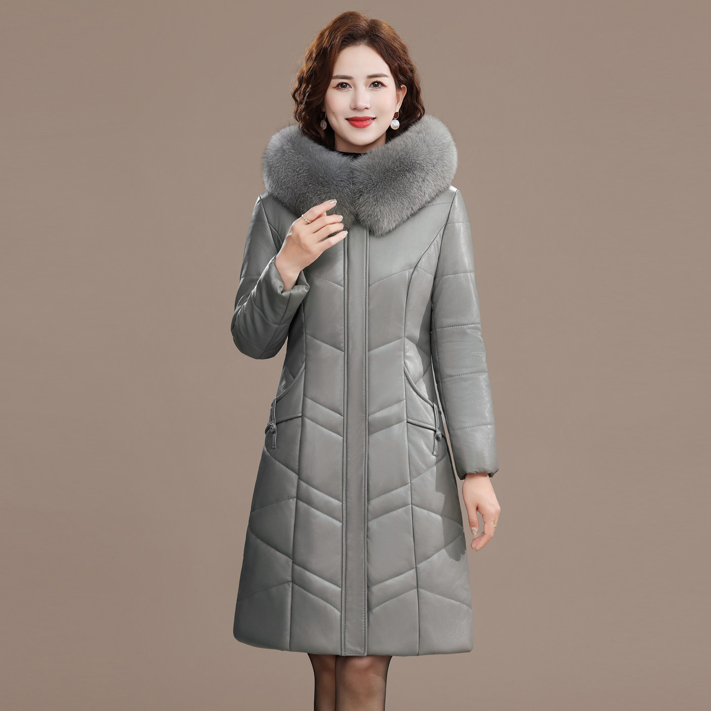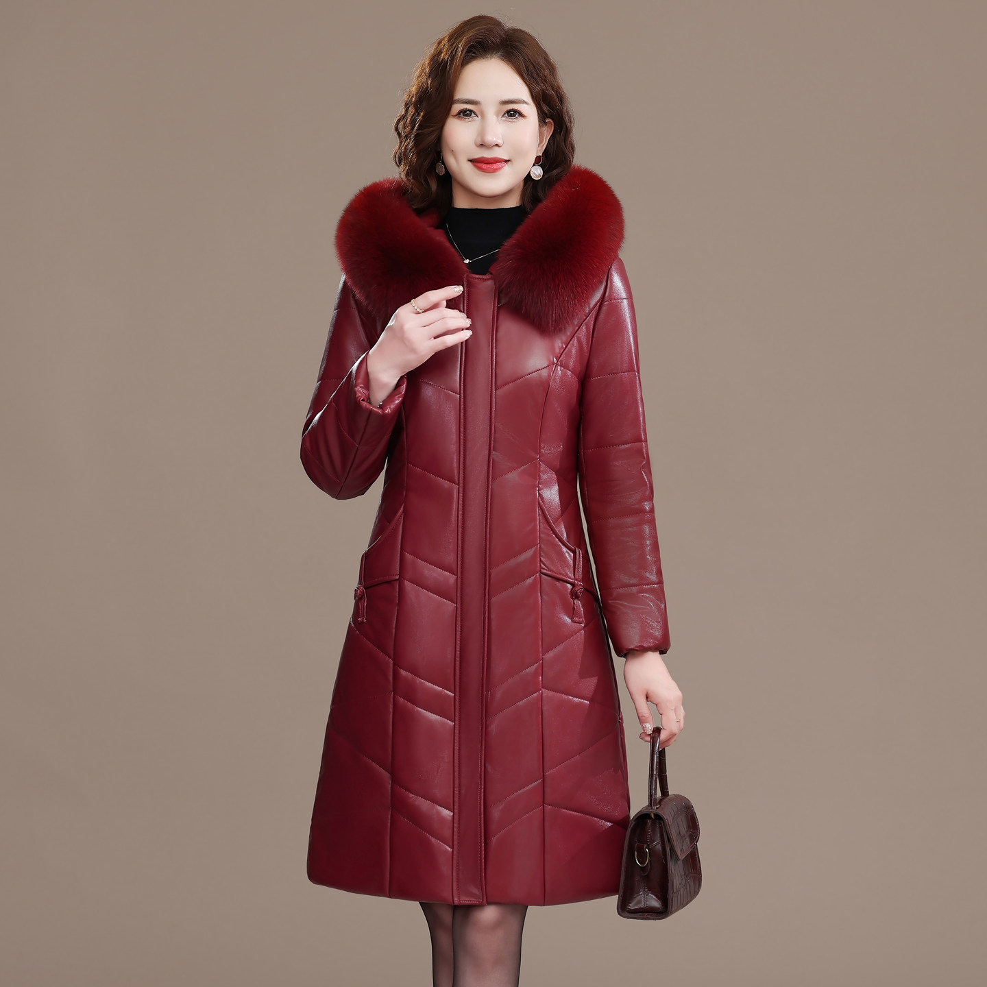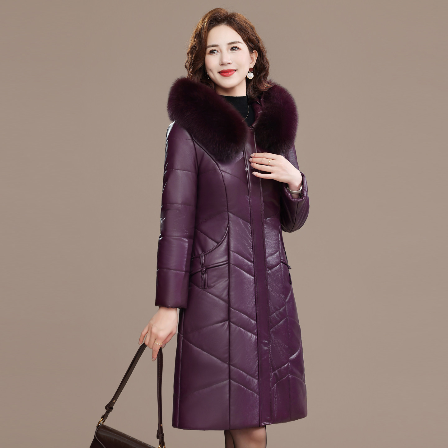 📚 2025新款海宁皮衣女真皮羽绒服中长款大码妈妈冬装毛领皮棉衣外套
