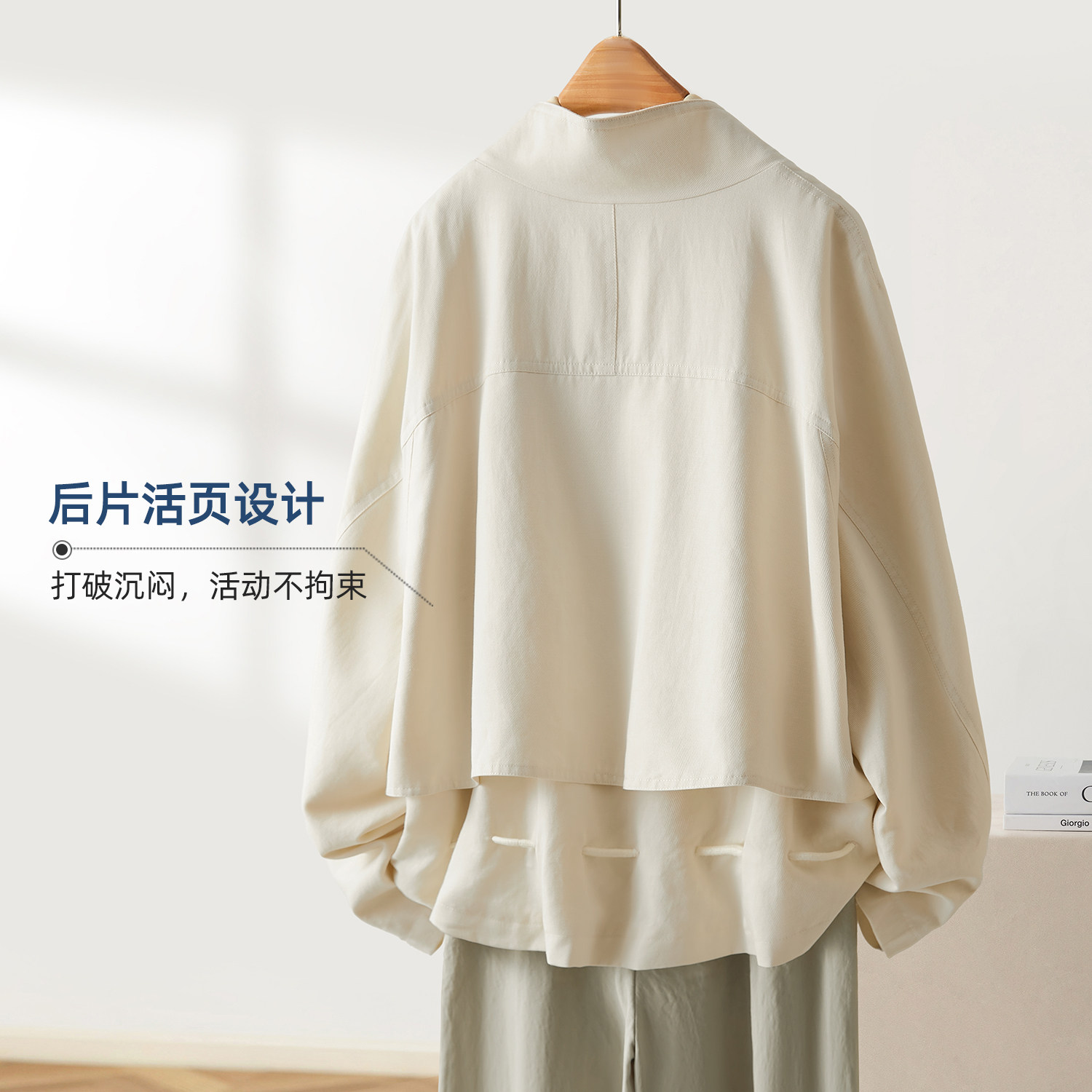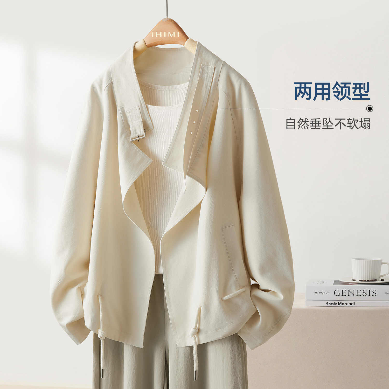 📚 IHIMI海谧含亚麻莱赛尔廓形短款风衣女款春季设计感抽绳百搭外套