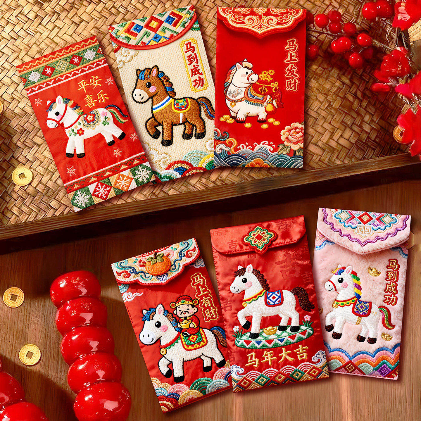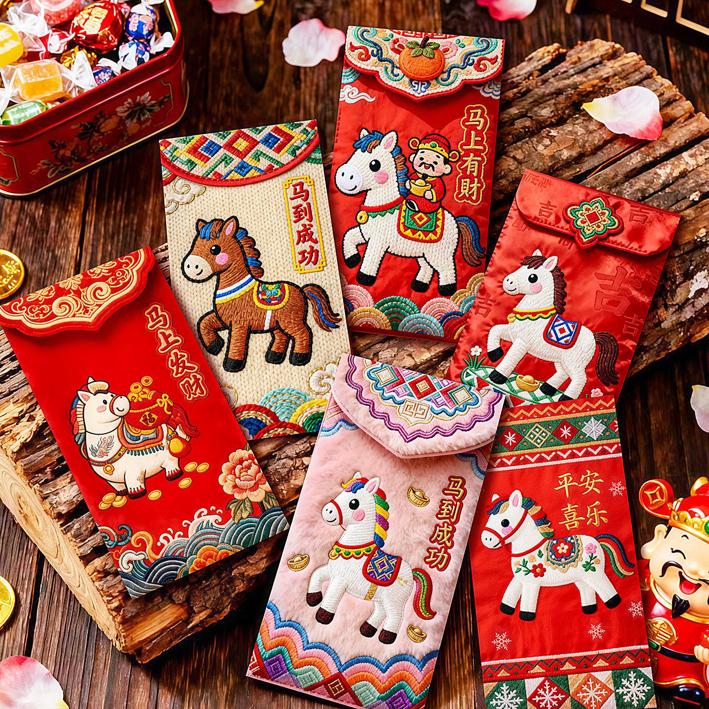 📚 2026立体刺绣风格马年创意红包可爱卡通过新年利是封新年压岁春节